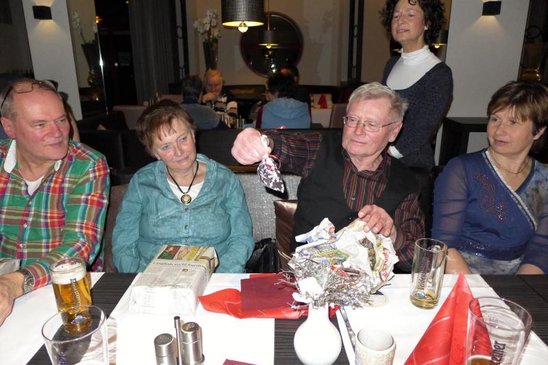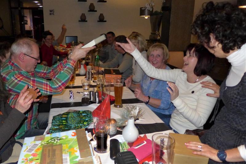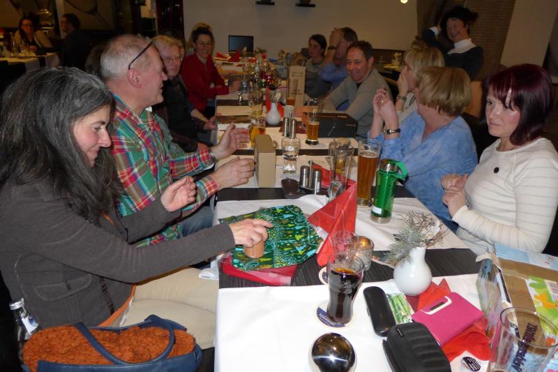 Die üppigen Weihnachtsessen waren inzwischen verdaut und ein Blick auf den druckfrischen Wettkampfkalender verriet Platz an diesem kalten Februarwochenende. So verabredeten sich die Bode-Runners der Gaensefurther Sportbewegung für ihre diesjährige Feierlichkeit im Staßfurter Salzlandcenter. Mal ganz ohne sportliche Betätigung war nur Schlemmen vom Buffet und gemütliches Beisammensein vorgesehen. Eine Fotoauswahl vom zurückliegenden Wettkampfjahr, brachte dann so manch vergessenes Erlebnis schnell wieder in Erinnerung. Nach einem weiteren Bierchen wechselten die mitgebrachten Schrottwichtelpakete amüsant ihre Besitzer. Wohl vorausahnend, dass alle neuen Mitglieder eine „Aufnahmeprüfung“ im Kreise der Runners erwartet, hatten kurioser Weise alle vier Neuzugänge eine andere Verpflichtung an diesem Abend. So blieben die alten Bodis unter sich und testeten in einem weiteren Tischspiel ihre bevorstehende Zugfahrt zum Drei-Länder-Marathon nach Bregenz. Das Ergebnis fiel eindeutig aus - ganze vier Umstiege und über neun Stunden Fahrzeit sind einfach zu anstrengend vor einem Marathon, da müssen dann wohl die Autos ran.