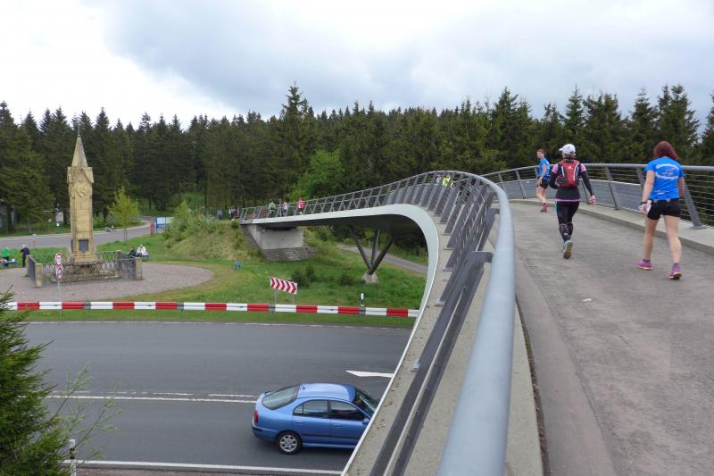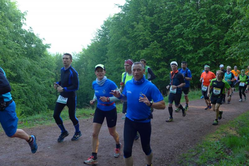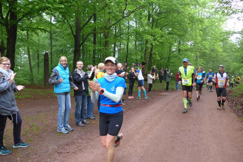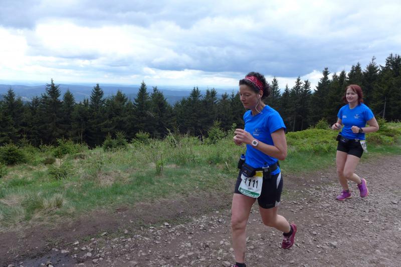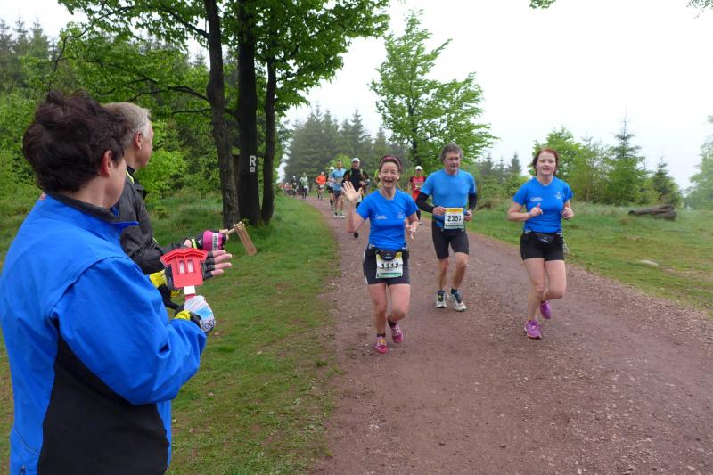 Kein Zeitlimit hatten sich Sylvia Köhn und Sabine Börner gesetzt. War Börner mit ihrer Zeit von 08:48 Stunden vor drei Jahren selig, galt bei ihr das Motto genießen, motivieren und ankommen. Bereits mit Übergabe der Startnummer mit den Ziffern „1111“ resümierte sie gelassen: „Das wird mein Lauf!“ Köhn schloss sich gerne den Routiniers an. Bei der Harzquerung über 51 Kilometer hatte sie erste Erfahrungen mit einem Ultralauf gemacht, mehrere Marathons galten der Vorbereitung, alles und allein dafür, diese Strecke durchzuhalten. An der Ebertswiese bei Kilometer 37,5 spürten viele Läufer schon einmal nach. Hier war die Hälfte bereits geschafft, reichte die Kraft aber für den Rest der Strecke? Mit der Verpflegung in der Hand wurde der nächste Berg von vielen nur noch im schnellen Schritt gegangen. Leises Gestöhne und schmerzverzogene Gesichter hielten die Fotografen an der Steigung für die Ewigkeit fest, bevor die Beine wieder im gleichmäßigen Rhythmus laufen konnten.
