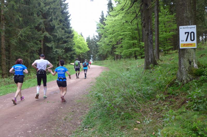 Die Ultraläufer hatten sich auf diese Herausforderung mehr oder weniger gut vorbereitet. Nicht immer harmonisierte das zeitaufwendige Training mit Job und Familie und mitunter zerstörten auch Krankheits- oder Verletzungsausfälle den Traum vom großen Finale. War mit dem Erreichen des Großen Inselsbergs das erste Etappenziel geschafft, ging es auf den nächsten 1,3 Kilometern brutal von 916 auf 746 Höhenmetern wieder hinab.