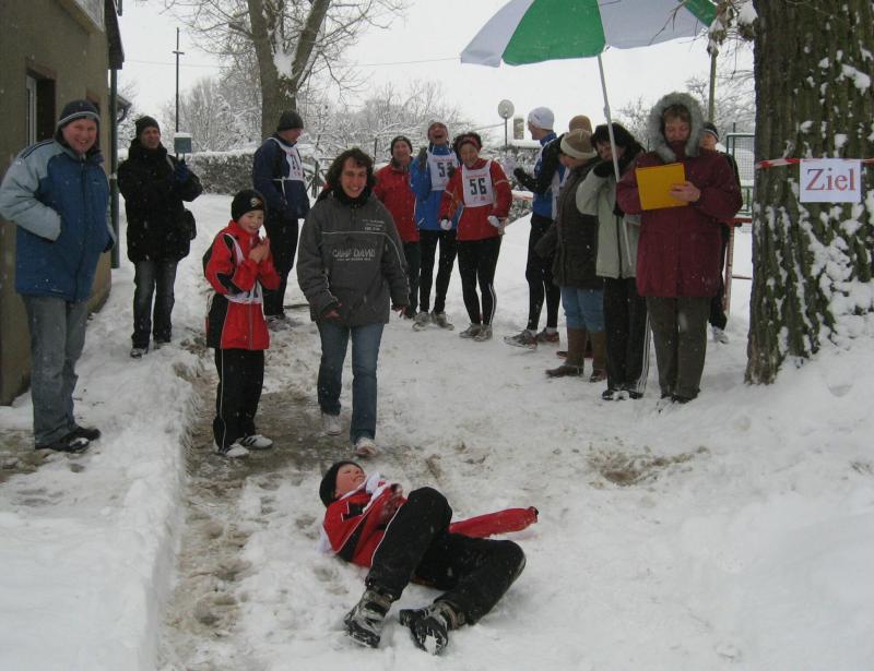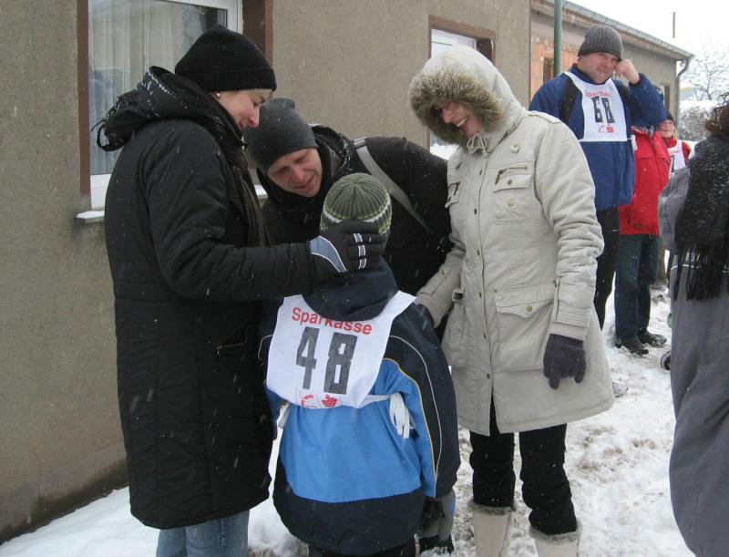 Insgesamt 33 Männer, Frauen und Kinder begrüßten das neue Jahr sportlich, legten alle samt eine zuvor abgesteckte Strecke ihrer Altersklasse entsprechend zurück, wurden dabei vom sportbegeisterten Publikum angefeuert und mit viel Applaus und Jubel im Ziel empfangen. Vor allem viele erwachsene Läufer rannten mit. „Es waren etliche mehr als im vergangenen Jahr“, zieht Claudia Hoffmann vom Organisationsteam „Sport, Spiel, Spaß – Integration durch Sport“ der Bürgerarbeiter aus Hecklingen eine positive Bilanz: „Die Veranstaltung ist gut gelaufen.“ Auch die Neuaufteilung der Wertungen in Hobbysportler und Profiläufer sei möglicherweise Anreiz für den ein oder anderen gewesen, sich die nunmehr zum dritten Mal organisierte Laufaktion nicht entgehen zu lassen, schätzt sie ein und berichtet, dass am Tag zuvor bereits Vorbereitungen getroffen wurden. Wegen dem Schnee sei der Kontakt zu geübten Läufern bereits Sonnabend hergestellt worden. „Wir haben mehrere angerufen und uns schlau gemacht, ob wir die Strecke kehren sollen oder nicht“, erklärt Claudia Hoffmann, und Thomas Skibbe, der Vorsitzende vom Sportverein Sankt Georg Hecklingen, fügt hinzu: „Die Läufer haben uns bestätigt, dass der Schnee auf der Laufstrecke besser ist, als eine geräumte vereiste, dann möglicherweise noch rutschigere Laufbahn.“