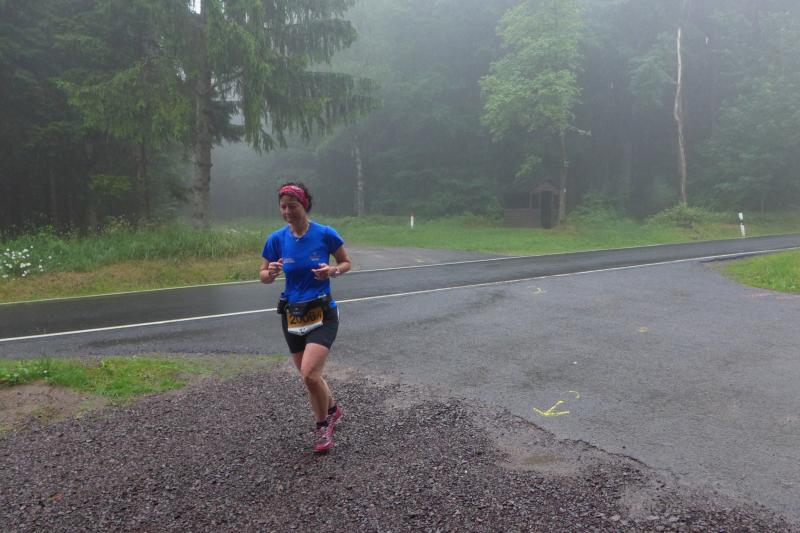 6:00 Uhr: Am ersten Verpflegungspunkt war Jens-Uwe ganz enttäuscht, denn Sabine ignorierte das reichhaltige Angebot komplett. Ein Schluck Wasser sollte genügen, denn die ersten Anstiege ließen bereits erahnen, was da auf den nächsten Kilometern kommen würde. Kurvig ging es in die dichten Wälder und mitunter war kein Vordermann mehr zu sehen. Für ein paar Kilometer schloss sich Jana vom Blau Weiß Hettstedt der Gaensefurther Läuferin an. Doch Sabine ließ sie am nächsten Berg wieder ziehen, denn Janas Einsatz ging nur bis zum ersten Staffelwechsel bei Kilometer 27.