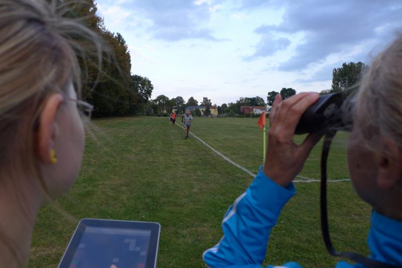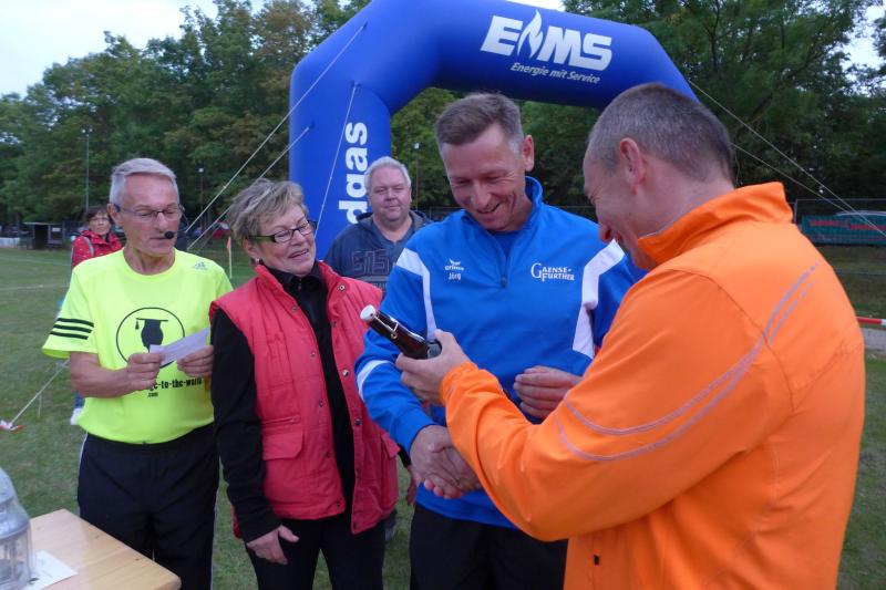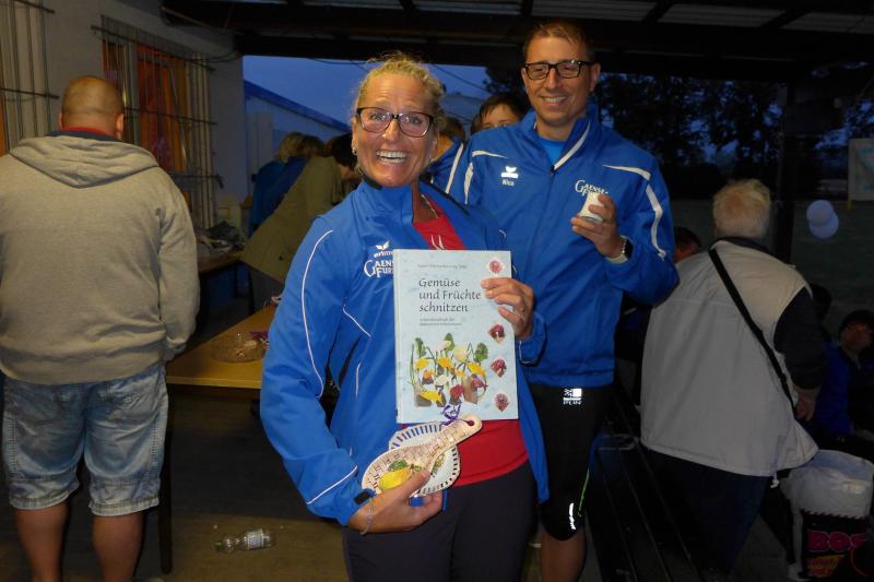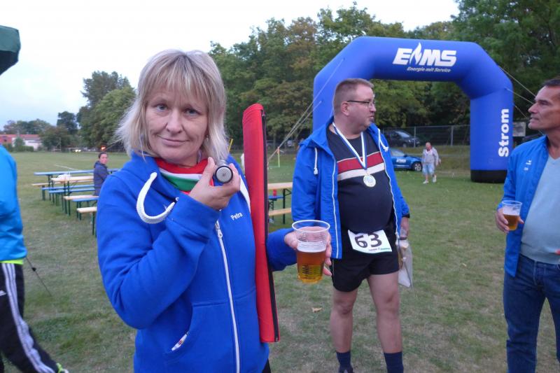 An der Spitze des Hauptlaufes über acht Kilometer ging es weiter heiß her. Während sich Stefan Otto vom SV Angern noch an Triathlet Toni Keller die Zähne ausbiss, sortierte sich eine starke Stefanie Nowak auf Gesamtplatz drei der Frauen ein. Nowak kann bereits auf eine erfolgreiche Triathlonsaison zurückblicken, die am Sonntag mit dem Riemer-Team-Triathlon am Barleber See zu Ende ging. Für das nächste Jahr ist ein Start beim Ironman geplant: „Man muss sich doch Ziele setzen!“ verriet die Athletin mit einem Augenzwinkern und lief mit den acht Kilometern gerne in den Feierabend. Noch förmlich inspiriert vom Geburtstagsständchen, bewies Schäper in seinem neuen Lebensjahr einen top Trainingszustand. In Vorbereitung auf den 3-Länder-Marathon im Oktober, trainiert Schäper fast täglich: „Ich habe ein paar Bekannte mit dem Lauffieber infiziert!“, entschuldigte er sich fast dafür, dass er neben den Trainingseinheiten, auch dafür noch Zeit, Lust und die nötigen Körner aufbringt. Ein schneller Lauf, den der locker abspulte, war sein ganz eigenes, ganz spezielles Geburtstagsgeschenk. Es dauerte gar nicht lange, da überquerte auch Lenny Dannehl die heiß ersehnte Ziellinie. Mit seinen zwölf Jahren lieferte sich der Neuzugang bei den Bode-Runners ein beherztes Rennen mit seinem Onkel Udo. Die beiden werden in Zukunft sicher noch viele ähnliche Familienausflüge unternehmen. Die obligatorische Sportplatzrunde musste sein, dann waren vor Einbruch der Dunkelheit alle Läufer wohlbehalten wieder im Ziel. Und auch die Genussläufer mussten keineswegs auf den „namensgebenden“ Pflaumenkuchen verzichten. Bis zum Schluss wurde der Kuchenstand immer wieder aufgefüllt, aber bitte mit Sahne! Jeder vorangemeldete Teilnehmer hatte dann die Qual der Wahl bei den originellen Tombola-Preisen. Ganz nebenbei wurde der „Siegerpokal“ gefertigt, denn auch da hatten sich die Veranstalter etwas ganz besonderes einfallen lassen. Siegerin und Sieger standen dem Schnellzeichner Karl-Heinz Klappoth aus Niederndodeleben Modell und durften am Ende ihr ganz spezielles Gemälde mit nach Hause nehmen. Um den Sportplatz wurde es langsam ruhiger und alle Aktiven verschwanden in die Nacht. Viel Zeit zum Ausruhen bleibt nicht, denn mit der 25. Jubiläumsauflage „Lauf über den gläsernen Mönch“ in Halberstadt, geht es nach der Sommerpause wieder auf Punktejagd im Novo-Nordisk-Landescup.