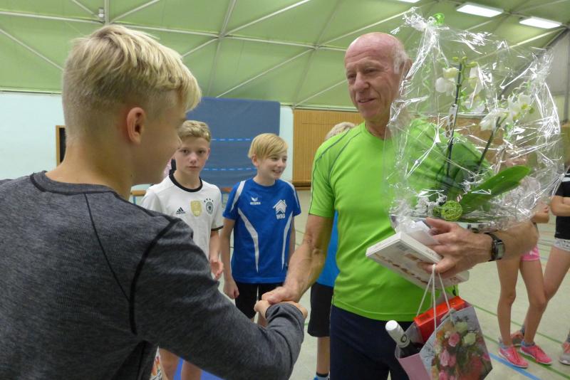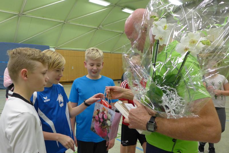 Damit hatte Jürgen Eisfeld von der Gaensefurther Sportbewegung wohl nicht gerechnet und spätestens als beim Happy Birthday der Text zwischen lieber Opa, lieber Trainer und lieber Jürgen stockte, war er den Tränen ganzschön nahe. Für das Arrangement des neuen Trainers hatten die Kinder gesammelt und ihr Taschengeld in Blümchen umgesetzt. Ein kleines Dankeschön, denn dass es wieder ein Training für den Gaensefurther Nachwuchs gibt, ist keine Selbstverständlichkeit.