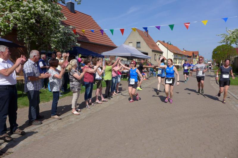 Es hätte der perfekte Tag für die Gaensefurther Sportbewegung werden können! Vor dem großen Hamburg Finale nutzten viele Läufer das Streckenangebot zum elften Elbdeich-Marathon, um sich den letzten Feinschliff zu holen. Für Dirk Meier stand vor dem Start bereits fest, dass er eine 01:45er Halbmarathonzeit laufen würde und Sylvia Köhn instruierte ihre Laufbegleiter, das Tempo möglichst gedrosselt und konstant zu halten. Vorgaben, die der anstehenden Hitzeschlacht durch die Elbauenlandschaft durchaus entgegen kamen. Ein Fauxpas für die Gaensefurther Triathletin Stefanie Nowak, die sich für ihre Ironman-Vorbereitung eine 03:30:00 Zielzeit über die Marathondistanz auf die Fahne geschrieben hatte. Bis zum Start verweilten die Läufer möglichst im Schatten und nahmen dankend die bereits geöffnete Wasserausgabe in Anspruch. Die angekündigte Hitze nahmen viele Läufer zum Anlass, sich doch noch auf eine kürzere Distanz umzumelden. So herrschte mit Lokalmatador Frank Schauer vom Tangermünder Elbdeichmarathon beim Start über die zehn Kilometer ein dichtes Gedränge. Auch Schauer ist in freudiger Erwartung auf das Hamburger Marathonspektakel und trat in Tangermünde an, um einen neuen Streckenrekord über die zehn Kilometer aufzustellen. Dies misslang leider, denn das Führungsfahrrad leitete Schauer und somit auch alle nachfolgenden Läufer auf eine Abkürzung. Der Veranstalter reagierte prompt und druckte alle Urkunden mit der korrigierten Streckenlänge aus. Schauer siegte trotzdem souverän mit über drei Minuten vor Martin Butzlaff vom SC Magdeburg, den Streckenrekord muss er jedoch in einer weiteren Auflage des Elbdeichmarathons angehen. Carola Schmidt vom BSV Eickendorf holte sich bei den Frauen über die zehn Kilometer den Gesamtsieg und Kirsten Geist von den Bode-Runners der Gaensefurther Sportbewegung siegte in ihrer Altersklasse W50. Die Läufer auf der Halbmarathonstrecke genossen auf den letzten drei Kilometern die schattenspendenden Bäume zwischen Elbe und Tanger. Die Marathonläufer kamen ihnen nach ihrer Wende in Tangermünde wieder entgegen. Das war doch kaum zu glauben, Nowak lief als erste Frau hinter dem Führungsfahrrad an den Vereinskollegen vorbei! Sie musste nun ein weiteres Mal hinaus in die Mittagshitze. Entlang des Elberadweges ging es erneut durch die Stimmungshochburgen Buch und Bölsdorf, wo der Elbdeichmarathon inzwischen wie ein Volksfest gefeiert wird.