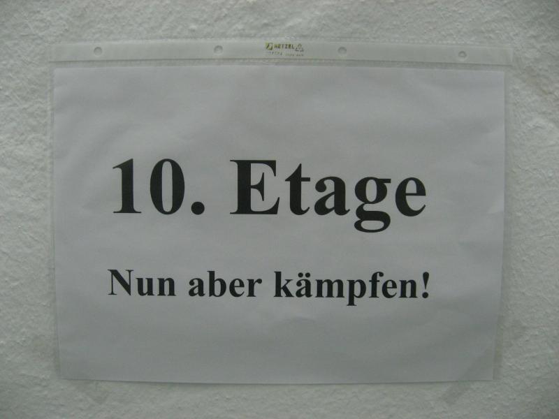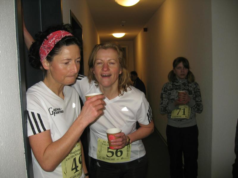 Jeder Sportler startet nach Eingabe seiner Startnummer in den PC für sich allein. „Fünf, vier, drei, zwei, eins - los!“ Die Entertaste bestätigt, Florian Börner mit der Startnummer 36 ist unterwegs. Nun beginnt der Wettlauf gegen die Uhr. Seit 2002 liegt der Streckenrekord über 232 Stufen bis in die 14. Etage bei 57,8 Sekunden. Nach 60 Metern Anlauf kommen die ersten acht Stufen vor dem Eingang in den Campus-Tower. Im Uhrzeigersinn geht es nun von Etage zu Etage, immer möglichst drei Stufen mit einmal. Weit am Geländer nach oben gegriffen, zieht sich Florian auf die nächste Treppe. In großen Ziffern steht die Geschosszahl an den Etagenausgängen. „Nur nicht hinsehen, jetzt noch nicht!“ Es läuft gut, die Kräfte richtig einteilen und tief Luft holen. Die Beine werden schwerer, aber mit der linken Hand auf dem Oberschenkel nachdrücken, das hilft beim Schwung holen. Die elfte Etage ist erreicht, die Lunge brennt von den tiefen Atemzügen aber die Beine spielen noch mit. Endlich kommt die 14, also noch 16 Stufen bis zum Ausgang. Ein kurzer Flur noch bis zur Ziellinie und alles life im Internet: „Guten Abend Magdeburg!“ Geschafft versinken die ankommenden Läufer im engen Flur vor der Fahrstuhltür. Sanitäter begutachten die nach Luft schnappenden Sportler und reichen Getränke. Florian Börner vom cash´n fun Junior Team der Salzlandsparkasse benötigte 64 Sekunden für seinen Hochhaustrip, am Ende ein glücklicher Platz in der Top-Ten-Wertung. Vater Jens-Uwe Börner, welcher etwas mehr Winterspeck in die 14. Etage schleppen musste, beendete als 79. diesen Lauf. Zum ersten Mal dabei, absolvierte Christoph Lampe von der ZLG Atzendorf tief beeindruckt und fasziniert, sein Debüt auf Platz 95. Bei den Frauen ein starkes Teilnehmerfeld. 19 Mädels waren bereits beim Kinderlauf gestartet, 34 Damen folgten nun beim Hauptlauf. Von den Bode-Runners der Gaensefurther Sportbewegung kam Annegret Wille am schnellsten nach oben (2. Pl. Altersklasse ab 35). Dicht gefolgt von Andrea Krukowski (3. Pl. AK ab 35) und Sabine Börner. Oben angekommen vermisste man in diesem Jahr die frische Luft und die tolle Aussicht auf das nächtliche Magdeburg, welche das kleine Flurfenster einfach nicht hergab. „Nun gut, aber runter nehmen wir jetzt den Fahrstuhl!“
