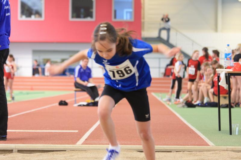 Sonnabend ging nur Nele in der Altersklasse 9 ( Ak ) im Dreikampf ( 50 Meter, 400 Meter, Weitsprung ) an den Start. " Sie war gut, außer im Weitsprung, da hat sie ein bisschen geschwächelt ", sagte Rösler. Die 50 Meter legte sie in 9, 17 Sekunden zurück. In 98, 09 Sekunden überquerte Nele die Ziellinie über die 400 Meter. Im Weitsprung leistete sie sich gleich zu Beginn zwei Fehlversuche. " Daher hat sie im dritten nur einen Sicherheitssprung gemacht. " Mit 717 Punkten erreichte sie in einem sehr großen Teilnehmerfeld den 38. Platz.