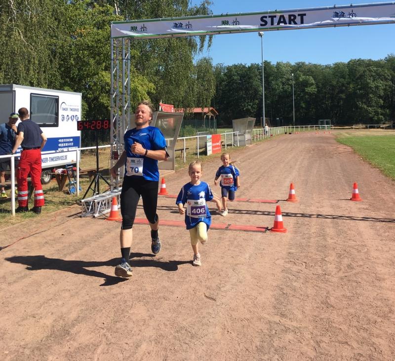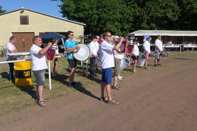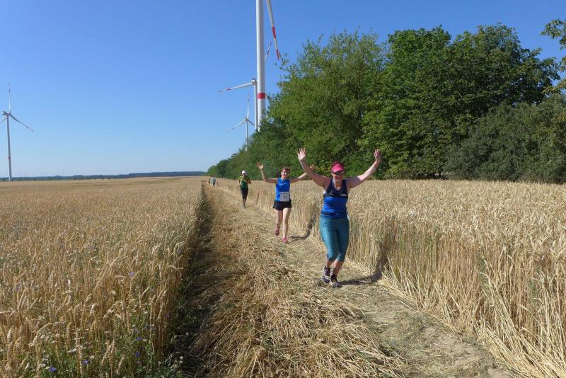 Der neu errichtete Windpark Hüselitz bildete die Kulisse zur dritten Auflage des Laufevents der Lüderitzer Vereine mit Unterstützung des SC Demker. Trotz der Temperaturen über 30 Grad, starteten 215 Läufer über die fünf angebotenen Streckenlängen. Der Moderator fand die treffenden Worte vor den Starts: „Seien sie bei dieser Hitze vorsichtig und trinken sie sehr viel. Es kommt weniger auf die Zeiten an, kommen sie gesund ins Ziel!“ Wie Recht er hatte, spendeten lediglich die Bäume am Sportplatz etwas Schatten, auf den Feldwegen brannte die Sonne erbarmungslos. Der Fanfarenzug Lüderitz eröffnete die Veranstaltung, bevor die Jüngsten auf eine Sportplatzrunde geschickt wurden. Jette Emilia Zaschke klemmte sich mit ihren fünf Jahren an Papas Sohlen und beendete die 400 Meter mit einem vierten Platz bei den bis achtjährigen Läufern. Über die 1,5 Kilometer ihrer Schwester Rieke Lucie Zaschke hatten die Beine des in der Altersklasse M45 startenden Papas dann etwas Mühe zu folgen. Mit 46 Sekunden Vorsprung auf Platz zwei, siegte Rieke souverän in der jüngsten Altersklasse. Wenn sie so weiter trainiert, wird sie ihr Ziel, einmal fünf Kilometer zu laufen, sicher bald umsetzen. Laut Empfehlung der Deutschen Leichtathletikordnung ist diese Streckenlänge aber erst ab Altersklasse U12 zu werten. Rieke wird also noch eine ganze Weile warten müssen.