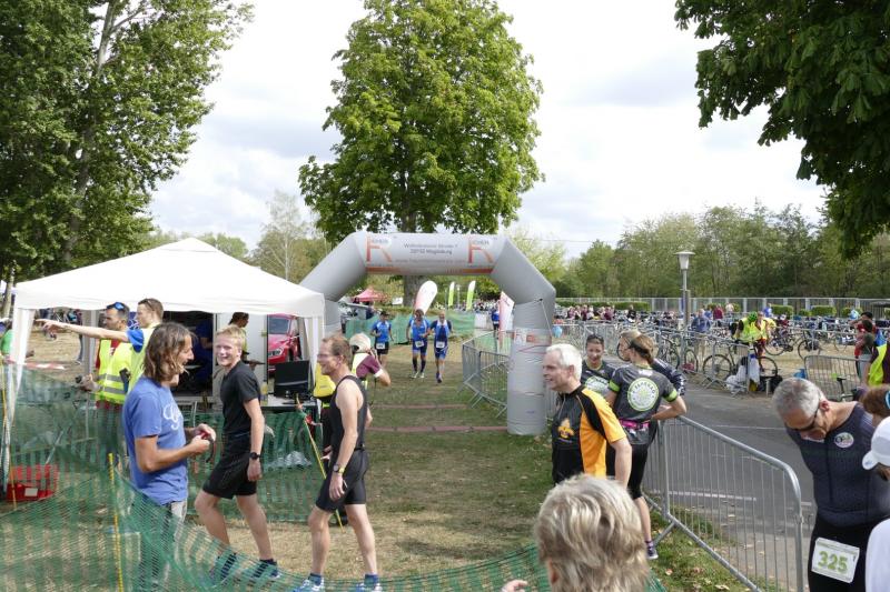 Fast 150 Teams gingen an den Start bei tollem Wetter und recht warmen Wassertemperaturen. Nach einem holprigen Sprintstart im Sand des Barleber Sees ging es ans Hauen und Stechen über die 750m Schwimmen. Die Staffelstarter müssen schon ein ordentlich dickes Fell haben und keine Angst vor derben Stößen durch die Beine und Arme der Konkurrenz. Nach Runde eins wurde der Transponder an den nächsten Starter übergeben und dann an Nummer drei. Das gleiche Prozedere vollzog sich dann auch über die 21km Radfahren und letztendlich bei den drei Laufrunden von je 4,7km um den Barleber See. Wenn alles klappte, konnte man dann mit dem Schlussläufer als Team durch das Ziel laufen und seine Leistung gemeinsam feiern. Bei den Gaensefurther Triathleten lockten unter anderem schon Himbeertiramisu, Erdbeertorte und leckere Wraps im Teamzelt.
