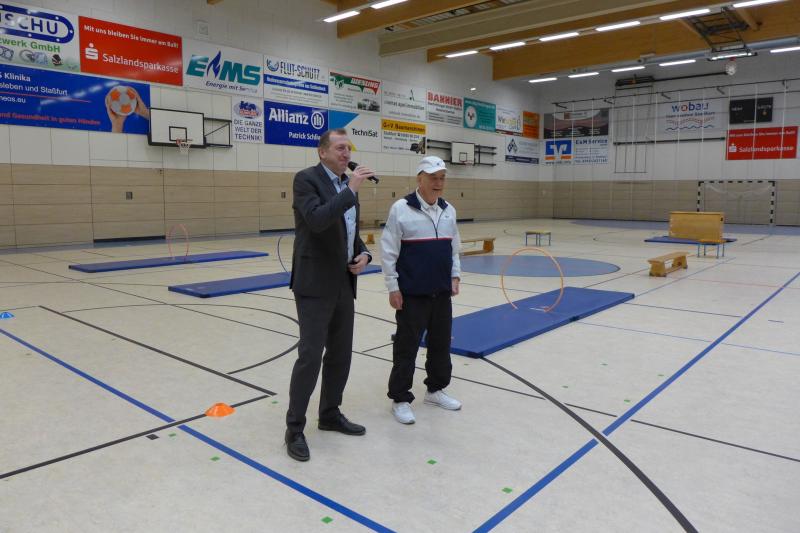 Adi selbst macht noch zwei- bis dreimal die Woche Sport. Fährt Fahrrad und macht Sport auf dem Stepper. Das macht ihn zu einen der fittesten 82-Jährigen weit und breit, der noch immer zahlreiche Termine wahrnimmt. „Das ist wie vor 40 Jahren. Der gleiche Einmarsch.“ Auch Ingo Kurze, Schulleiter der Grundschule Nord, muss lachen. Auch ohne Täve Schur, der aus privaten Gründen absagen musste, machte Adi in seinem Trainingsanzug eine gute Figur.