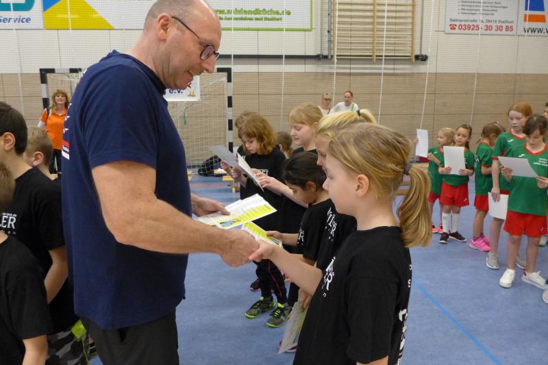 Und Adi? Hatte Lust. „Ich bin sehr angetan von Staßfurt“, sagt er. Staßfurts Oberbürgermeister Sven Wagner (SPD) wurde ins Boot geholt, Sponsoren angefragt und die fünf Grundschulen abgeklappert. Dort war das Echo sehr positiv. „Das ist eine schöne Idee“, sagt Andrea Haberzettl, Schulleiterin der Grundschule Löderburg. Ihre Schule stellte eine gemeinsame 16-köpfige Delegation mit der Grundschule Förderstedt. Die Goethe-Grundschule, die Grundschule Nord und die Uhland-Schule stellten je 16 Kinder aus allen vier Klassenstufen: Macht 64 Kinder. Die Kinder wurden von den Schulen ausgesucht.