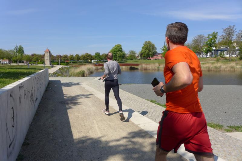 „Ein Signal geben“, wollte mit seiner Teilnahme am Erinnerungslauf auch der Staßfurter Oberbürgermeister. Mit Stadtwerke-Geschäftsführer Eugen Keller an der Seite umrundete Sven Wagner in großem Bogen den Stadtsee. Im September wolle er die zehn Kilometer-Distanz in Angriff nehmen, kündigte der OB an. Mit „Staßfurt bewegt sich mit Augenmaß und Abstand“ will Wagner auch den Optimismus weitergeben, den er zuvor bei Gewerbetreibenden in der Steinstraße vernommen habe. Das Leben gehe langsam wieder in Normalität über. Die ersten Sportvereine durften in der vergangenen Woche bereits wieder „kontaktfrei im Freien“ trainieren. ..