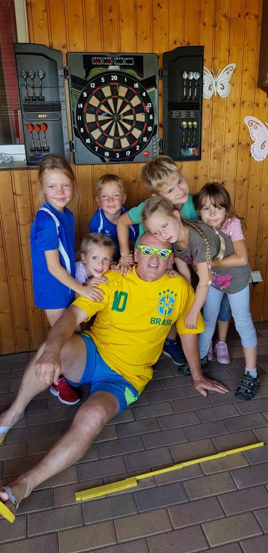 Nach der ersten Übernachtung im Schlafsack, garniert mit einer Nachtwanderung, stand am zweiten Tag ein Kindersportfest mit sechs Disziplinen auf dem Programm. Spiele wie Socken-Zielwerfen, Teebeutelweitwurf, Büchsenwerfen, Torwandschießen (daraus wurde dann aber Torwandwerfen), Wasserpistolen-Zielspritzen und Dart. Jeder Einzelne wurde dabei lautstark angefeuert und es wurde viel gelacht. Die Spaß-Olympiade fand nach etwa zwei Stunden ihren Abschluss mit einer Siegerehrung der etwas anderen Art. So gab es keine Verlierer, sondern nur Gewinner. Aber eine Reihenfolge musste es dennoch geben. Jeder bekam eine Teilnehmerurkunde und der Kleinste bekam den größten Pokal und der Größte bekam den kleinsten Pokal.