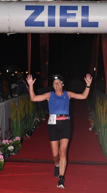 Da der Start erst am Nachmittag erfolgte, war es bereits dunkel, als Stefanie als insgesamt 11. Frau und Erste ihrer Altersklasse w50 sichtlich zufrieden, nach 5:22 Stunden das Ziel erreichte.