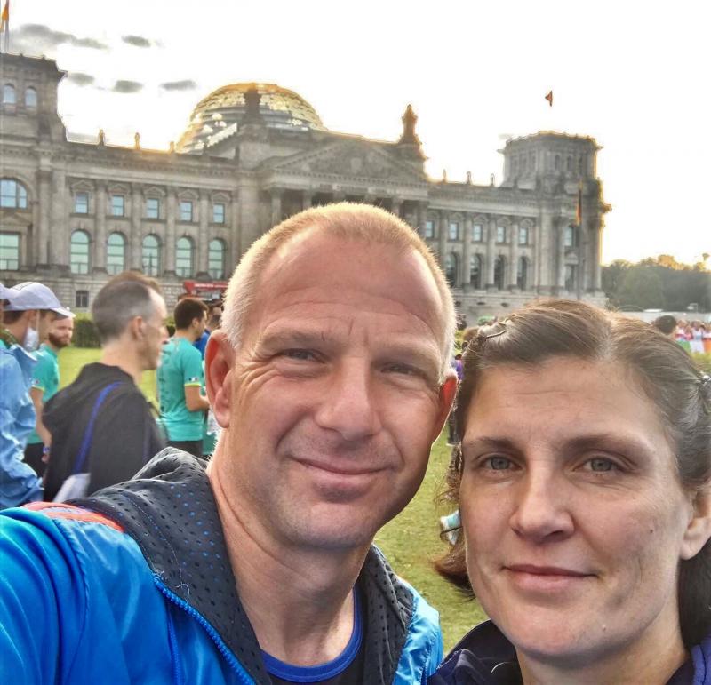 Nicole und Jens Schlottag strahlen mit dem schönen Laufwetter und ihren Medaillen um die Wette. Beim Berlin Marathon zusammen mit den Profis starten zu dürfen, war eine aufregende Angelegenheit, die die Eheleute sicher nicht so schnell vergessen werden, zumal Nicole mit persönlicher Bestzeit finishte.