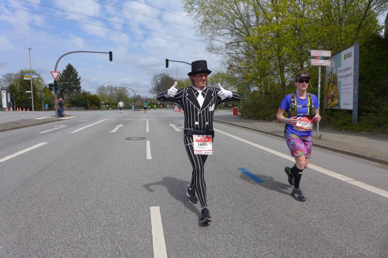 In Börners Zeitplan passte alles wieder und ein Foto nach dem anderen dokumentierte nicht nur Bothe, sondern auch das verrückte Drumherum an der Laufstrecke. Eine Band löste die nächste ab, Picknick am Streckenrand und gut gelaunte Hamburger, die ihre Marathonläufer Meter für Meter durch die Stadt trugen. Die regelmäßig eingerichteten Verpflegungspunkte nahm Bothe alle mit: "Trinken!", das hatte er sich gemerkt! Im Ziel feierte man in der Zwischenzeit neue Streckenrekorde.