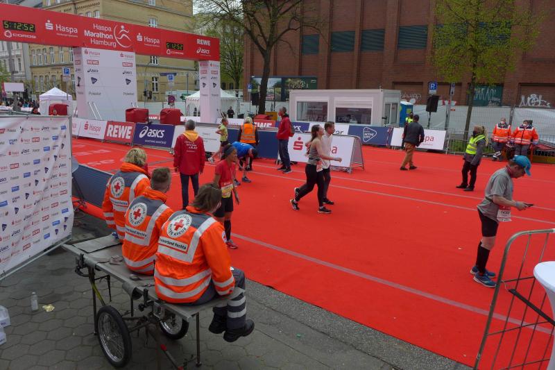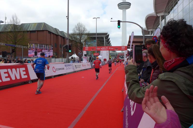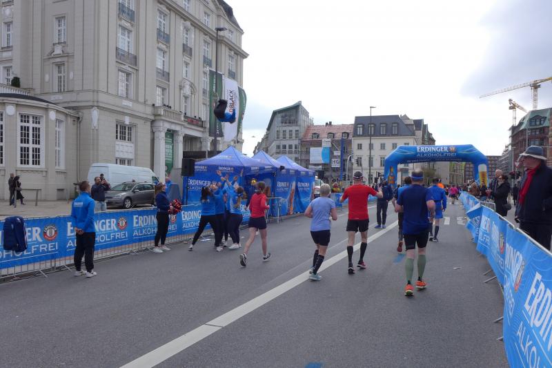 Während sich bei den Männern der Kenianer Cybrian Kotut mit einer Endzeit von 02:04:47 knapp vor Stephen Kissa aus Uganda mit 02:04:48 durchsetzte, lief Yalemzerf Yehualaw bei den Frauen eine sensationelle 02:17:23. Da war für Bothe gerade Halbzeit. Es ging weiter Richtung Stadtpark und die markante Kilometermarke 30 nährte sich. Weiter war Bothe noch nie gelaufen und unter Läufern ist bekannt, dass ab 30 der eigentliche Marathon beginnt. Daher hatten sich Tina und Sabine Börner in Ohlsdorf, dem nördlichsten Punkt der Strecke positioniert, um Bothe für die letzten zwölf Kilometer zu pushen. Die beiden wussten genau, wie jetzt jeder Schritt schmerzen konnte und der Abstand der Kilometerschilder scheinbar immer länger werden würde. Nun ging es nur noch in eine Richtung, nämlich in Richtung Ziel! Im Stadtteil Rotherbaum grüßten die Zuschauer noch einmal von der Außenalster, bevor es schnurstracks auf den Funkturm zuging.