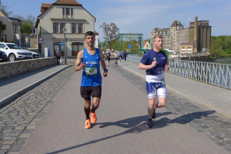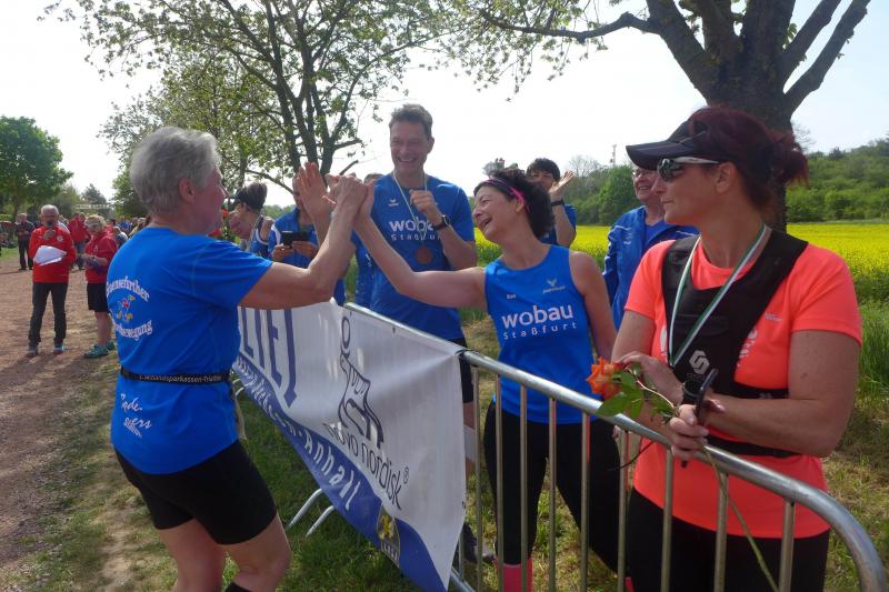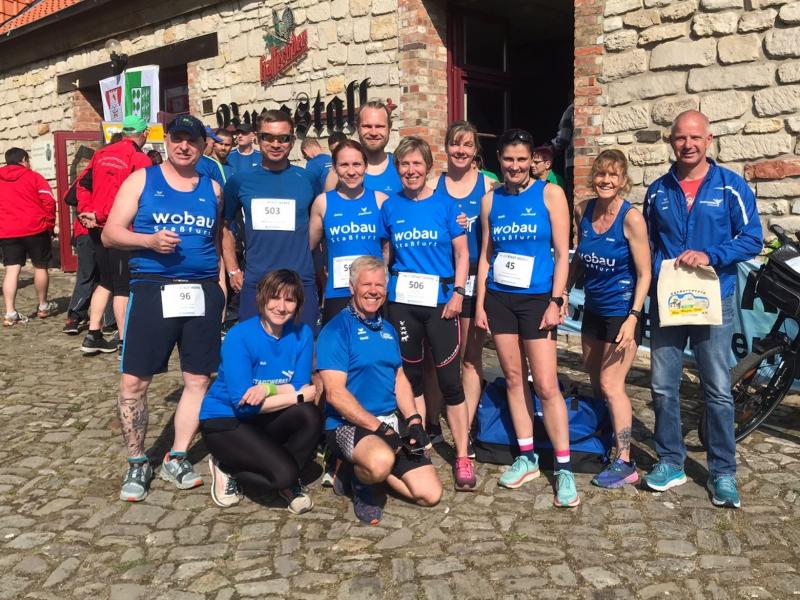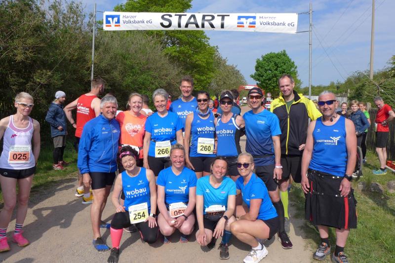 Bereits am nächsten Tag waren die Gaensefurther wieder mal beim befreundeten PSV Bernburg zu Gast. Dieser hatte zum 5. Bernburger Halbmarathon geladen, der zudem in die Wertung für den Solvay Cup einging. Mit Triathlet Maik Löwe, Josef Hindricks, Rinaldo Schielke, Sandra Homann, Edgar Schmidtke, Katrin Winkler-Hindricks, Heike Lenz, Jens-Uwe Börner, Verena Hildebrandt, Peter Brauer, Petra Becker und Jürgen Günther schickten die Bode-Runners ein zwölfköpfiges Aufgebot in die Kreisstadt. Dort konnten Strecken über zwölf beziehungsweise 21,1 Kilometer absolviert werden. Besonders Schielke ging dabei wieder fleißig auf Punktejagd und wurde in 1:36:49 Stunden über die Halbmarathon-Distanz Gesamtzwölfter und Dritter seiner Altersklasse M30. Am Streckenrand gab es zudem das eine oder andere bekannte Gesicht zu sehen, denn die Streckenposten vom PSV Bernburg waren für die Bode-Runners natürlich keine Unbekannten.