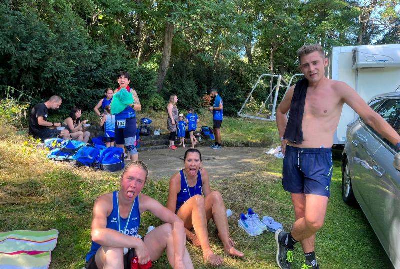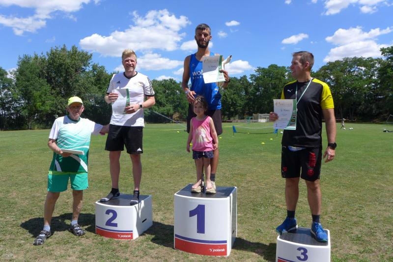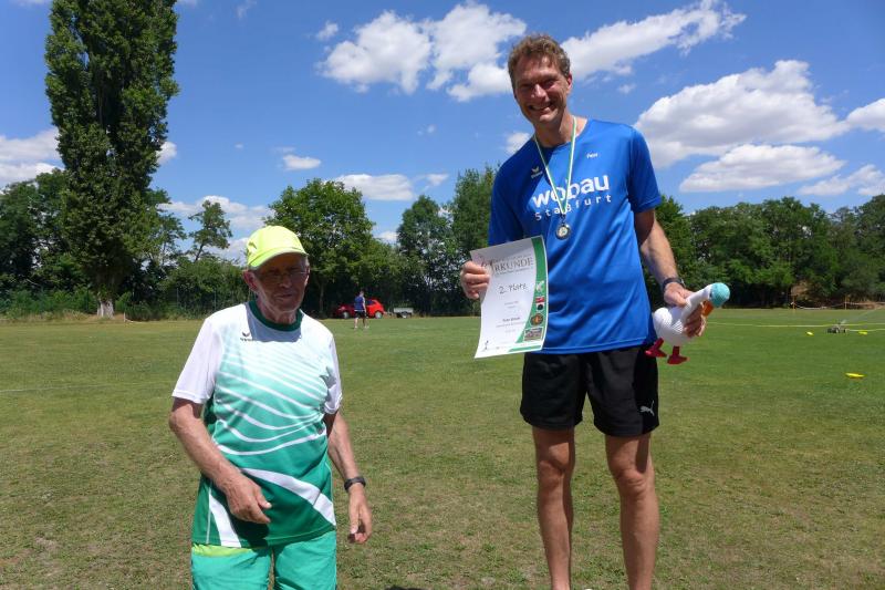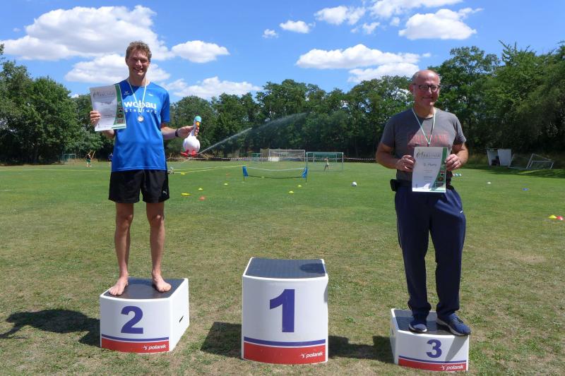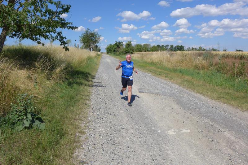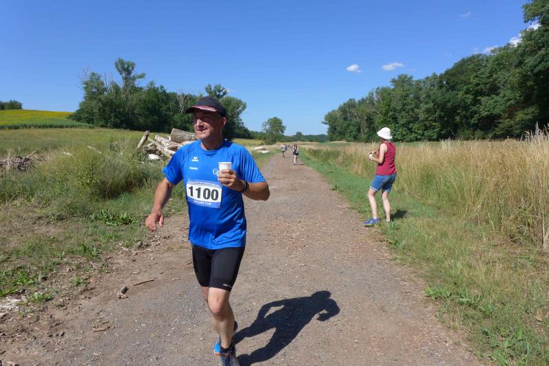 Anders die Läufer der Strecken im vierten Wertungslauf der Solvay-Cup-Serie über 5,7 und 9,8 Kilometer, die den heißen Temperaturen etwas länger ausgesetzt waren. Über den saftig weichen Spielrasen ging es für die Strecken gemeinsam vom Sportplatz zur Bahnunterführung und dann auch bald hinaus, rund um den Gierslebener Hain. Genau hier begann vor drei Jahren Rinaldo Schielkes „Laufbahn“ bei den Bode-Runners. Als er 2019 mit dem Gesamtsieg über die Kurzstrecke sein mögliches Potential zeigte, waren die Bode-Runners von dem Neuzugang sehr angetan. Aktuell holte er sich in Giersleben den Altersklassensieg in der M30 auf der Wertungsstrecke über 9,8 Kilometer und musste nur Minh Lé vom PSV Bernburg den Vortritt im Gesamtklassement der Männer lassen. „Im nächsten Jahr rutsche ich dann in Lé`s Altersklasse!“, malt sich Schielke schon jetzt die spannenden Rennen mit dem Lauffreund und Konkurrenten aus. In der Altersklasse M55 konnte sich auch noch Peter Brauer über seinen zweiten Platz freuen.