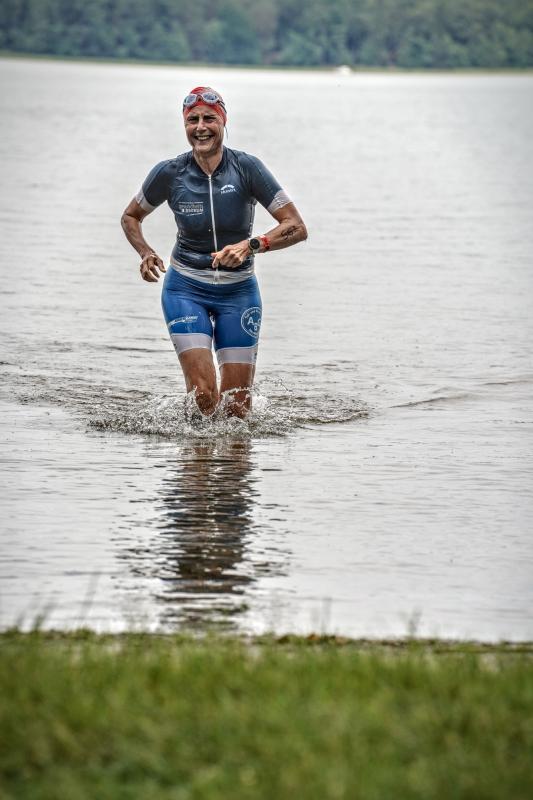 Ludßuweit ging bei ihrer Premiere den Sprint an und bewältigte die 11,3km Laufstrecke und 2km Schwimmen in 2:04:03 Stunden. Laufen ist nicht gerade ihre Lieblingsdisziplin aber beim Kraulen im Freiwasser legt sie ein gutes Tempo vor. So nahm sie den Ratschlag ihrer Teamkollegen an und ging alles ganz sachte an, halt wie beim Training. Nachdem die ersten 6km Laufen über Berg und Tal im Wald endlich geschafft waren, überholte sie beim Schwimmen einen Konkurrenten nach dem anderen. Da der zweite Teil der Strecke sehr „schwimmlastig“ war, konnte sie bis ins Ziel noch einige Positionen gut machen. „So geht also Spaß“ dachte sie sich und wird im nächsten Jahr auf jeden Fall wieder mit dabeisein.