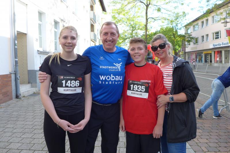 Die folgenden vier und zehn Kilometerläufe waren auch schnell, und in vielen Altersklassen gab es Platzierungen, doch aus Staßfurter Sicht waren die Läufe bei weitem nicht so spektakulär. Schnellster Läufer über zwei Stadtrunden, also vier Kilometer, war Oskar Brett vom Dr.-Frank-Gymnasium in 16:36 Minuten. Nach 19:24 Minuten war auch Sven Wagner wieder im Ziel, der mit der gesamten Familie angereist war und im Laufdress der Gaensefurther Sportbewegung mit den vier Kilometern das Familienwochenende einläutete. „Eine wahnsinnige Stimmung an der Laufstrecke, das spornt einen ja dermaßen an, so viele Zuschauer müssten wir auch in Staßfurt an die Laufstrecke kriegen!“, nimmt er die Eindrücke mit, die es am 02. Juni 2023 mit dem neuen Bürgermeister umzusetzen gilt. Die herzliche Einladung an Lehrtes Bürgermeister Frank Prüße ist auf jeden Fall schon angekommen und vielleicht gibt es auch die eine oder andere Revanche mit dem Lehrter SV.