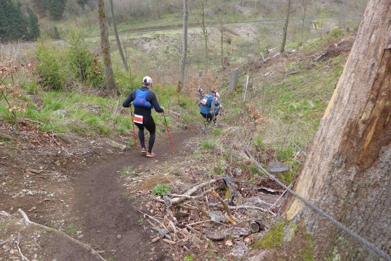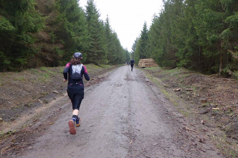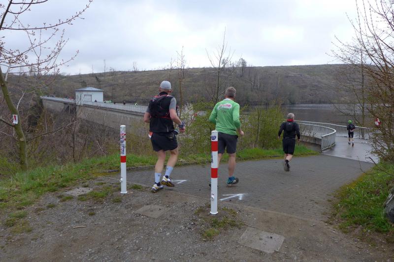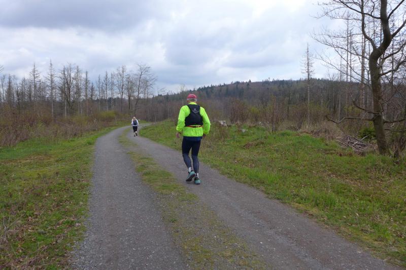 Einen Tag später waren dann die Langstreckenläufer der Gaensefurther Sportbewegung gefordert, denn die 42. Harzquerung stand auf dem Plan. Jens-Uwe Börner hatte für weite 51 Kilometer gemeldet. Petra Becker und Detlef Schäfer standen mit ihm gemeinsam am Start in Wernigerode, waren aber nicht ganz so verrückt und „nur“ auf 25 Kilometer aus. Durch den schlechten Zustand der Wege mussten sich aber alle Teilnehmer auf Umleitungen und damit längere Strecken einstellen. Gleich zu Beginn ging es heftig bergauf und riesige Matschpfützen sorgten für nasse Schuhe. Schlechte Voraussetzungen für eine Langdistanz, begünstigt Feuchtigkeit doch oft eine Blasenbildung. Ein Überholen war schwierig, denn die lange Läuferkette schob sich schleppend die schmalen Steigungen hinauf. Zeit, den Blick schweifen zu lassen, der anstatt auf dichte Wälder oft über weit gerodete Flächen im Horizont verschwand. „Hier war doch vor 6 Jahren noch Wald!“, schüttelte Börner in Erinnerung an seine letzte Harzquerung traurig den Kopf und registrierte stattdessen den Geruch der riesigen Holzstapel frisch geschlagener Bäume am Wegesrand. Aber nicht nur das frustrierte. Auch sein Zeitplan geriet komplett aus den Fugen, denn die Ankunftszeit der Harzbahn, die er sich auf den Unterarm geschrieben hatte, war schon längst verstrichen. Um sie am Kreuzungspunkt fotogarfisch festhalten zu können, hätte er schon fünf Kilometer weiter sein müssen. Der 25-er Kurs mit Becker und Schäfer war bereits abgebogen und in Richtung Ziel unterwegs, als dann auch Sabine Börner ab Benneckenstein die 30 Kilometer lange Wanderstrecke in Angriff nahm. Abenteuerlich führte sie auch durch Bachläufe, Seile halfen an steilen Passagen hinunter oder hinauf und immer wieder galt es Platz zu machen, wenn sich die schnelleren Läufer von hinten laut bemerkbar machten: "Links! Ich komme von rechts!" Auf das Überholen des Gatten wartete sie allerdings vergebens, denn zu allem Unglück verpasste er den richtigen Abzweig. Diesen Irrtum bemerke er erst nach zwei Kilometern, da es keine Markierungen und Streckenposten mehr gab. Bis zum Abzweig nochmal zwei Kilometer zurück und Läufer überholen, die man ja schon mal einkassiert hatte - Börners Laune war verständlicher Weise auf dem Tiefpunkt.
