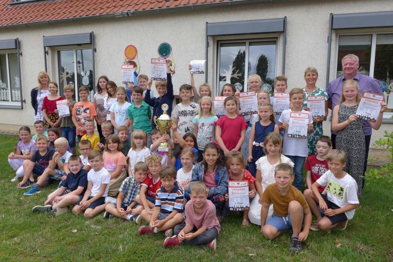 Circa 60 Jungen und Mädchen aus Förderstedt waren an den Start gegangen, um für ihre Grundschule den 1. Platz und somit den großen Pokal zu erlaufen. Begleitet und lautstark angefeuert wurden sie an der Strecke von ihrer Schulleiterin Gabi Lange, Sportlehrerin Kathrin Schumann, weiteren Lehrern und natürlich ihren Eltern und Familien – mit Erfolg. Zu den zehn schnellsten Läufern der Schule gehören: Tom Kunze, Maximilian Heinrich, Emily Siebert, Luisa Lorenz, Rieke Zaschke, Cedric Heine, Tristan Heine, Ida Ollenhauer, Henri Block und Elli Wieschke. Sie erhielten eine Extra-Urkunde für ihre persönliche Spitzenleistung.