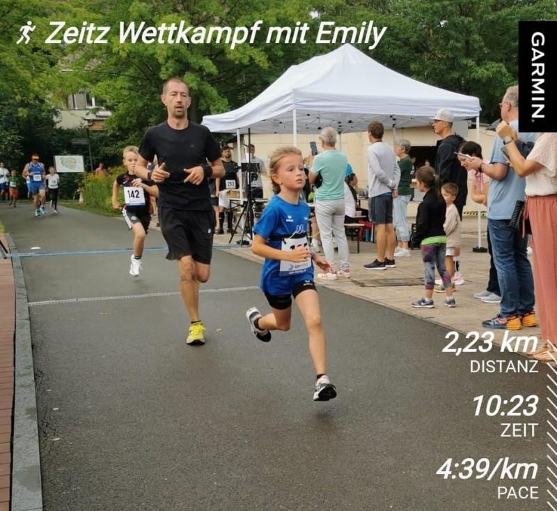 Die weite Anreise nach Zeitz in den äußersten Süden Sachsen-Anhalts, zum elften Lauf im Novo Nordisk Landescup, nahmen dieses Mal nur zwei Bode-Runners der Gaensefurther Sportbewegung in Angriff: Emily Siebert, die sich auf der schnellen 2,5 Kilometer langen Distanz gute Chancen versprach und Jens-Uwe Börner, der beim Lauf durch den Park am Schloss Moritzburg sein Punktekonto im Läufercup noch etwas aufpolieren wollte. Schon der Kinderlauf über 1,2 Kilometer war gut besetzt, beim Start über die doppelte Streckenlänge hatte man zu tun, die zierliche Emily im Starterfeld ausfindig zu machen. Wie vorteilhaft so eine windschnittige Figur ist, stellte Emily in ihrem Sprint dann wieder einmal unter Beweis. Die zwei Laufrunden hatten ihren Charme, denn vorbei am Kräuter- und Themengarten, an Rosenstauden und Duftsträuchern, machte der Schlosspark auch Jahre nach der Landesgartenschau immer noch einen blühenden Eindruck. Emily bekam das bunte Blumenmeer vielleicht noch bei der Streckenbegehung zusammen mit ihrem Papa mit, nach dem Startschuss war die Achtjährige dann aber ganz auf das Rennen fokussiert. Ruhig angegangen, arbeitete sie sich Läufer für Läufer nach vorn. Eine ordentliche Regenhusche brachte kurz vor dem Zieleinlauf die nötige Abkühlung. Von den 55 Gesamtteilnehmern finishte Emily als zwölfte, beziehungsweise als zweite „Frau“. Zu der in der weiblichen U16 startenden Maja Heiland von der SG Chemie Zeitz waren zwar noch 12 Sekunden Abstand, die Erstplatzierte hatte Emily jedoch über die gesamte Distanz im Visier.