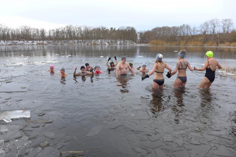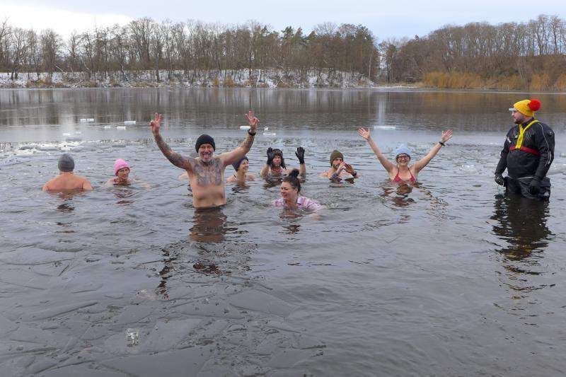 Dass die Laufgruppe Bode-Runners der Gaensefurther Sportbewegung Spezialisten auf Kurzstrecken, routinierte Marathon- und sogar Ultraläufer in ihren Reihen hat und die Laufverrückten auch gerne Berg-, Hindernis- und Matschläufe absolvieren, ist bereits ausreichend bekannt. Doch, ausgelöst durch die Corona-Zeit, sind einige Sportfreunde inzwischen nicht nur auf Laufwegen unterwegs. So geht es nach dem Training zur Entspannung auch mal in die Sauna, man „schwimmt aus“ im Löderburger See oder sortiert Körper und Geist in einer Yogaeinheit neu. Oft machen gesunde Rezepte die Runde, die man am besten gleich daheim ausprobiert und nach einer Laufeinheit zur Verkostung in die Runde gibt. Zur Stärkung des Immunsystems hat sich aber nun auch das Eisbaden bei den Bode-Runners etabliert. Nach einem Post von Petra Becker vor drei Jahren fing alles an! Sie hatte sich mit ihrem Partner im zugefrorenen See ein Badeloch geschlagen und sich bei herrlichstem Sonnenschein ablichten lassen. Im eiskalten Wasser und lächelnd! Das schlug ein wie eine Bombe, das war eine wahrhaftige Abhärtung! So fanden sich schnell drei Damen, die von nun an auch nach den Sommermonaten einfach weiter in den See steigen wollten und das bei jedem Wetter! „Da bekommt der Begriff Jahreskarte ja eine ganz andere Bedeutung!“, schmunzelte man vor zwei Jahren, als sich die Abteilung „Eisfuß“ am Löderburger See ihren Namen gab. Nun machten Bücher über das Eisbaden die Runde, Atemtechniken und kleine Tricks, wie man diesen enormen Kälteschock am einfachsten überstehen kann. Einer kann nur mit Mütze rein, nicht reden, Klappe halten! Die Schultern nicht nach oben ziehen, ausatmen und eintauchen, Augen zu und tausend kleine Nadelstiche spüren, die dann hoffentlich bald den ganzen Körper heizen. Inzwischen hat die Gruppe auch männliche Verstärkung bekommen und mit Jens Schlottag sogar einen richtig „alten Hasen“, der sibirienerfahren ist und sich 2014 bereits im Baikalsee abkühlte.
