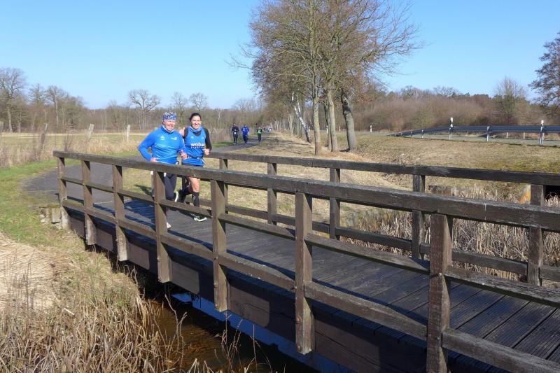 Während der Zehn-Kilometer-Kurs auf eine Runde durch die idyllische Tangerlandschaft führte, waren die meisten Starter eher auf der kurzen Distanz über sechs Kilometer unterwegs. Auf dem asphaltierten Radweg wurde ordentlich Gas gegeben und nach der Hälfte der Strecke gewendet. Die Plätze auf dem Podest zeichneten sich bereits im Streckenverlauf ab, Rinaldo Schielke (M35) lief auf Gesamtplatz zwei ein. Zusammen mit Mario Kreutzmann, der in diesem Jahr erstmals in der M50 startet, hatten beide den Altersklassensieg in der Tasche. Auch in neuer Wertungsklasse unterwegs, sicherte sich Christa Fümel einen dritten Platz in einer starken W70!