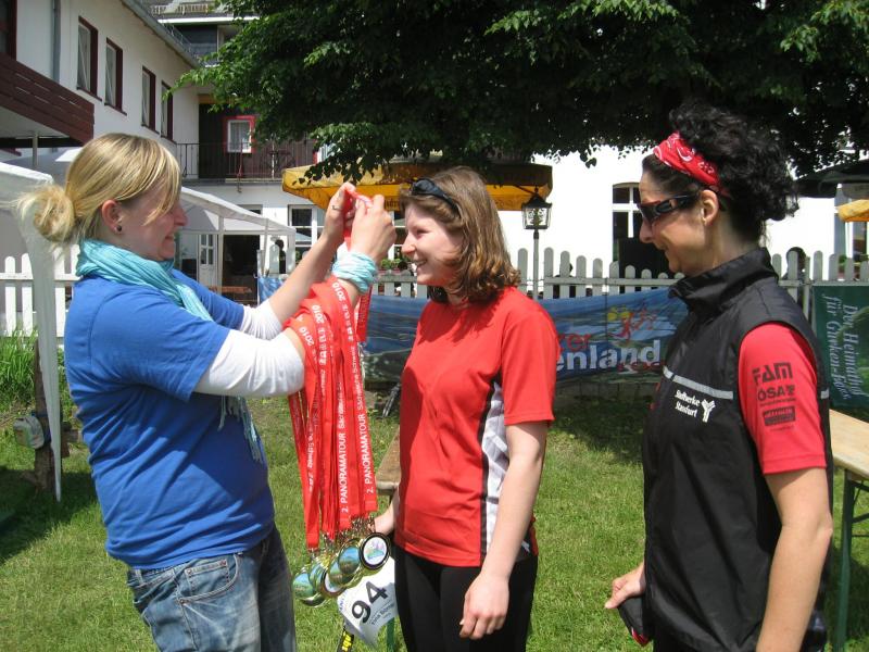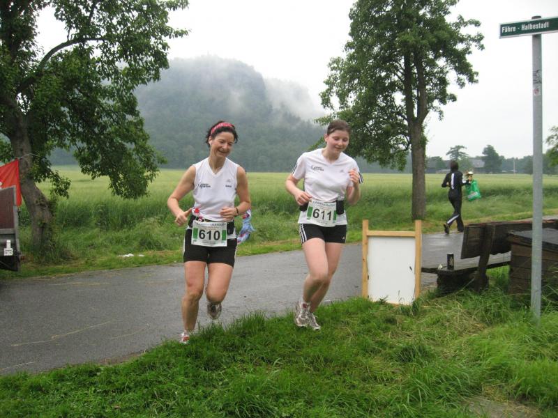 Die zweite Auflage des Panoramalaufs durch die Sächsische Schweiz, der am Sonntag durchgeführt wurde, nahmen Jens-Uwe und Sabine Börner (Gaensefurther Sportbewegung) sowie Tochter Tina (Hamburg) in Angriff. Bei idealem Wetter waren auf einer waldreichen 30 Kilometer langen Strecke entlang der Elbe 490 Höhenmeter zu überwinden. Jens-Uwe Börner (Altersklasse M 45/4.) benötigte dafür 2:33:52 Stunden. Gemeinsam ins Ziel liefen (v.l.) Sabine (Ak W 40/4.) und Tina (Ak W20/2.) nach 3:27:55 Stunden.
