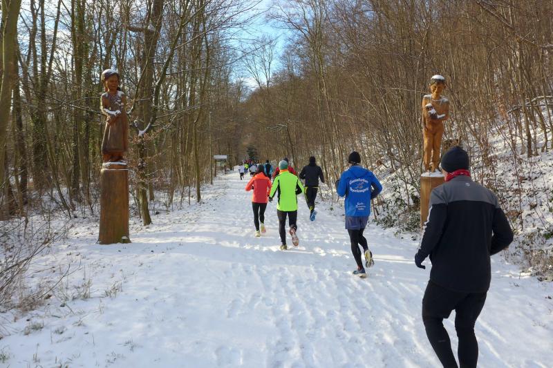 Die Nacht hatte das Selketal bei Meisdorf noch in winterliches Weiß gehüllt. Dass dennoch über 100 Laufbegeisterte den kalten und teilweise rutschigen Wetterbedingungen trotzten, freute den gastgebenden SV Germania 1928 Meisdorf sehr. Den gemeinsamen Start für alle Strecken vollzog Ulrich Küsters mit einem knallenden Luftballon. Schnell hatte das Läufer- und Walkerfeld den Ortsausgang erreicht und tauchte mit dem Naturlehrpfad in das Winterwonderland ein. Auf der frischen Schneedecke hatte man guten Gripp. Immer entlang der Selke, grüßte die Burg Falkenstein von oben stolz in das Tal. Für alle Sechs-Kilometer-Läufer war mit der Thalmühle der Wendepunkt erreicht. Alle Zehner verlängerten um zwei Kilometer, ehe sie am nächsten Wendepunkt wieder kehrt machten. Nun bestand die Möglichkeit, weiter im Tal zu bleiben, um am Ende auf 20 Kilometer zu kommen oder über den hoch gelegenen Kamm einen tief verschneiten Rückweg zu nehmen. Tatsächlich gab es Läufer, die sich über die lange Steigung der Leinuferstraße zum Startbereich zurückkämpften. So ambitioniert waren die Gaensefurther beim Punschlauf nicht. Zu groß war die Befürchtung, dass im Ziel schon alle Schmalzstullen und Würstchen verdrückt waren oder das Duschwasser am Ende nur noch kalt gewesen wäre. Doch diese Angst war vollkommen unbegründet, hatte sich der Sportverein doch gerade für die Langdistanz gut vorbereitet.