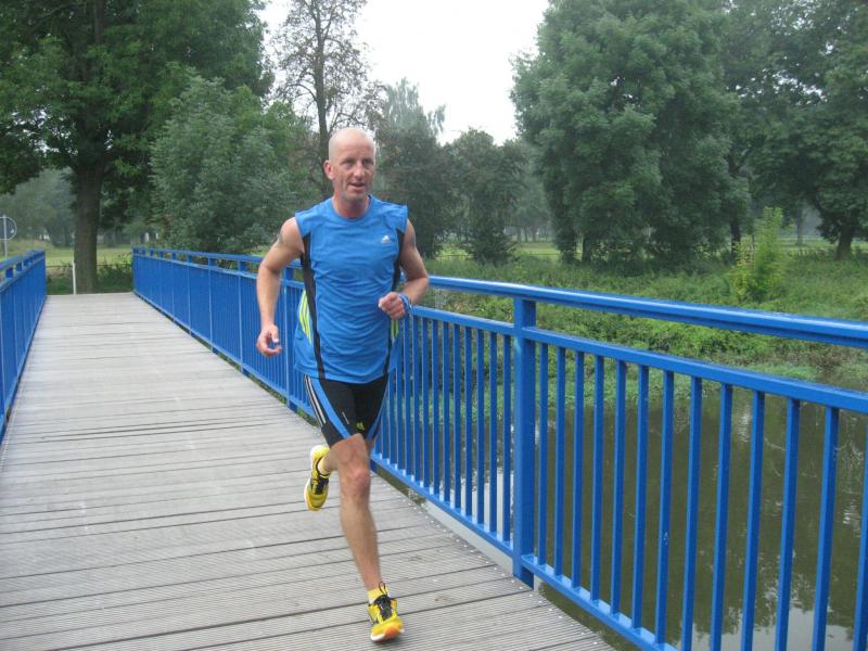 Diese fanden sich, pünktlich zum Zieleinlauf des Nachwuchses, allmählich an der Strecke ein. Auch Markus Schuster war unter ihnen. Der Läufer vom SSV Rodewald bereitete seine noch müden Gliedmaßen mit Aufwärmübungen und lockeren Läufen auf die anstehenden Strapazen vor. Er ist oft in der Gegend, der Liebe wegen. „Ich besuche regelmäßig meine Freundin, die in Bernburg wohnt“, so der Norddeutsche. Seine große Leidenschaft, das Laufen, lässt ihn dann auch auf fremdem Terrain nicht los. „Ich fühle mich hier wohl. Die Gegend an der Saale ähnelt landschaftlich sehr der an der Weser. Da macht es einfach Spaß zu laufen“, so Schuster.