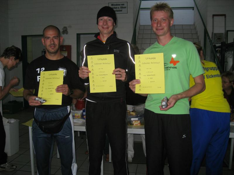Bei den Frauen erging es Blauwitz‘ Teamkollegin Sabine Börner (W 40) auf der Fünfkilometerstrecke ähnlich. Auch sie musste sich mit einer starken Konkurrentin, mit der sie auf der Strecke nur kurz nach dem Start auf Augenhöhe lief, auseinandersetzen. „Gestern ist es etwas später geworden, da wollten die Beine nicht so wie ich“, verriet Börner, die Gesamtzweite und in ihrer Altersklasse Erste wurde. In guter Form hingegen fühlte sich Siegerin Gabriele Tendler vom LAV Halensia Halle, und das obwohl sie bereits am Vortag beim Mitteldeutschen Marathon in Halle über die gleiche Distanz an den Start ging. Sie erklärte: „Wichtig ist das Einlaufen. Wenn dann der Startschuss fällt, merkt man die Schmerzen eh nicht mehr.“ Während die Frauen bereits im Ziel waren, mussten die Männer noch einen Großteil der Strecke hinter sich bringen. Blauwitz, der im ersten Streckendrittel noch an dritter Position lag, hinter dem jungen Christoph Finze vom Skiclub Köthen, kam nun immer besser in Fahrt. Finze konnte er hinter sich lassen und den zweiten Platz bis ins Ziel verteidigen. Doch er gestand: „Ich musste aufpassen, dass er nicht noch mal rankommt.“ Doch das tat er nicht. Finze wurde Dritter, vor Detlef Schäfer, der sich nach dem Rennen auch etwas eingestehen musste: „Noch eine Runde hätte ich nicht geschafft“, so der Gaensefurther, der in einer Zeit von 48:30 Minuten das Ziel erreichte. Gut fünf Minuten vorher lief Marcus Schuster ein. Er konnte sich nicht nur über seine hervorragende Siegerzeit von 43:48 Minuten freuen, sondern auch über die ersten spärlichen Sonnenstrahlen, die langsam aber sicher durch das graue Dickicht drangen, obwohl der „Schlacks“ mit den äußeren Bedingungen nie Probleme hatte: „Wenn es draußen Herbst wird, bricht bei mir läuferisch der Frühling aus“, scherzte der Gewinner im Ziel. Ähnlich sah es auch Torsten Blauwitz: „Ideales Laufwetter!“ Daher sieht er, wie auch seine Mitstreiter von der Sportbewegung, noch lange keinen Grund, die Laufschuhe gegen Winterstiefel zu tauschen. „Beim Dr. Otto-Boldt-Duathlon in Quedlinburg greifen wir nochmal an.“ Das Wetter könnte den Läufern am 19. September dann wieder entgegenkommen.