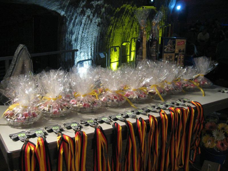 Sofort nach dem Zieleinlauf wurde jeder Läufer am mitgeführten Chip gescannt. Noch vor dem Becher Wasser hatte man also die Auswertung in der Hand. Florian Börner vom cash´n fun Junior Team der Salzlandsparkasse jubelt als einziger Bode-Runner. Zu groß war die Konkurrenz in den einzelnen Altersklassen. Aber für jeden Finisher stand ein Salzkristallpokal bereit, ein Erinnerungsstück an ein hartes Stück Arbeit! Nach dem gemeinsamen Versuch am Bergmannslied, feierte die Masse ihre Sieger im imposanten Festsaal.