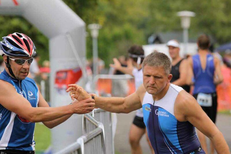Jedes Team-Mitglied hatte 500 m zu schwimmen, 20 km Rad zu fahren und 5 km zu laufen. Jeweils nach einer absolvierten Einzeldistanz wurde der Chip an das nächste Mannschafts-Mitglied weitergegeben.