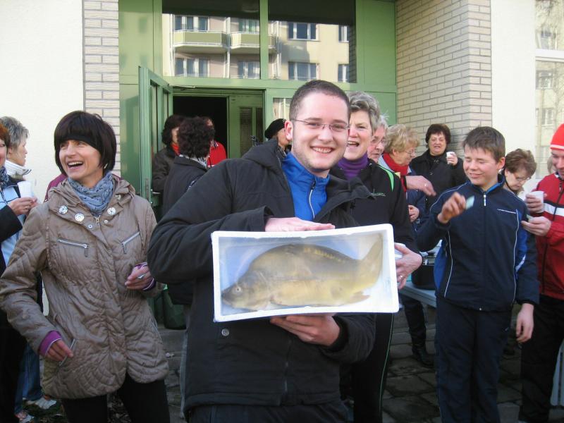 105 Läufer, Geher, Nordic-Walker und Geocacher waren beim diesjährigen Atzendorfer Silvesterkarpfenlauf dabei. Auch Pferde, Schlitten und eine Kutsche gaben dem Ganzen Volksfestcharakter. Das sei auch so gewollt, sagte von der veranstaltenden ZLG der Vorsitzende, Günter Döbbel, der nach einer Aufwärmgymnastik den Start für die Läufer wie jedes Jahr mit einem Silvesterknaller vollzog. Mit von der Partie waren – wenn auch passiv - Staßfurts Stadtratschef Dr. Walter Blauwitz, der seinen Sohn nach Atzendorf begleitet hatte, und aktiv Ortsbürgermeister Peter Rotter. Dabei konnte jeder Läufer seine Laufstrecke von 1000, 2000, 4500 oder 7500 Metern selbst auswählen. Die Nordic-Walker waren eine halbe Stunde früher gestartet und beim Geocaching, einer Art Schatzsuche mit Navi-ähnlichen Geräten, musste schon vom Start weg Kontakt mit den GPS-Satelliten gesucht werden. Als erster überhaupt kam ein 75-jähriger Sportfreund aus Hecklingen mit seinen Nordic-Walkingstöcken von der 2000-Meter- Strecke zurück. Bei den Läufern war auf der langen Strecke Torsten Blauwitz vor Ingo Bieganski (beide Gänsefurter Sportbewegung) und Christoph Lampe erfolgreich. Er bekam den von Johann Hauser dafür ausgelobten Silvesterkarpfen. Bei den Damen war Ina Schöler von der heimischen ZLG die Schnellste. Nachdem alle am Ziel waren, wurde bei alkoholfreiem Glühwein und Gebäck das Ganze ausgewertet. Fünf weitere Karpfen wurden verlost.