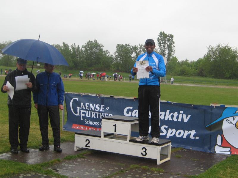 Annett Lampe(w40) erreichte bei ihrem Debütlauf („ bei ihrer ersten richtig anspruchsvollen Laufveranstaltung“) nach Babypause auf Anhieb auch wieder Platz 3 und ließ an alte sehr gute Zeiten erinnern. Allerdings hat auch sie sich dem Triathlon verschrieben wie auch ihr Mann Matthias Lampe. Er tat es seiner Frau gleich und schaffte auch den Sprung auf das Podest. In der Altersklasse m40 erkämpfte er sich unter den Laufspezialisten Platz drei. Die Männer mussten 25 Runden laufen. Aber auch hier ließen die grauen Wolken ihre nasse Last nicht fallen und so mussten auch die Männer nur mit den Pfützen auf der Bahn kämpfen.