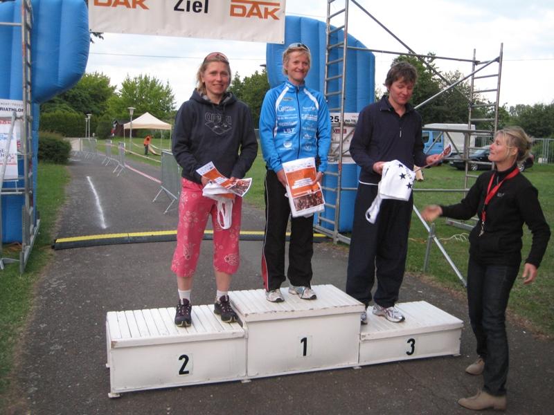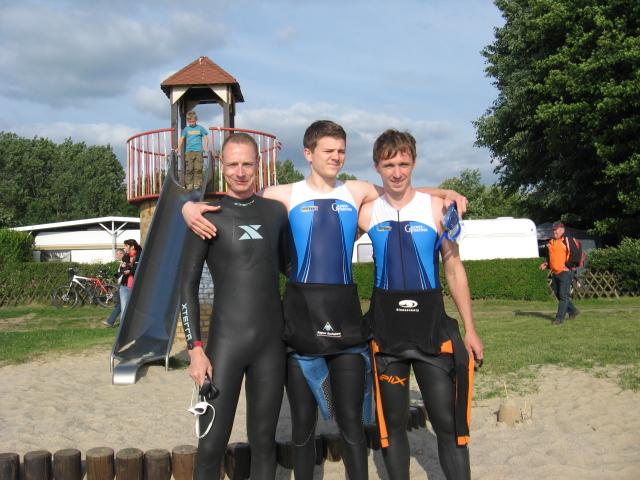 Annett Lampe(w40) und Annegret Wille (w45), die einzigen Damen im Team, schafften es unter die besten zehn Teilnehmerinnen und ließen auch mindestens die Hälfte der männlichen Triathleten hinter sich. In Ihren Altersklassen siegten sie. Beide glänzten mit sehr guten Schwimmzeiten über die 750m, jeweils unter 16 min und Annett überraschte mit einer super Laufzeit von 21:31min über die 5 Kilometer.