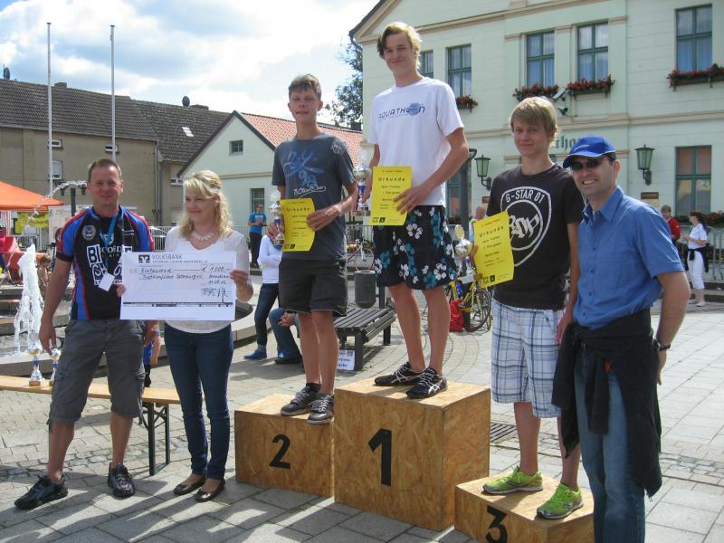 Geschadet hat es aber nicht. Während Mutter Annegret den Sieg bei den Seniorinnen 2 einfuhr und Gesamtsechste wurde, sicherte sich Martin Rang zwei in der männlichen Jugend A und schaffte mit Platz drei auch in der Gesamtwertung den Sprung auf das Podium. Wenngleich "alles ganz gut lief", hatten es vor allem Lauf- und Radstrecke in sich. Die abschließende Disziplin führte die Athleten gleich zu Beginn eine Natursteintreppe herunter, "da hatte man nach dem Radfahren noch gar kein Gefühl in den Beinen." Auf den zwei Rädern war dies jedoch umso mehr gefragt. Geschuldet war dies der "Haarnadel" am Wendepunkt: "Da musste man auf Tempo Null runter."