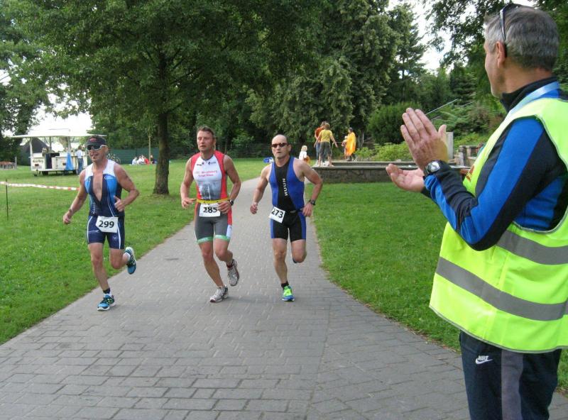Auch auf den drei Radrunden à 13,3 Kilometer machten sich einige Neuerungen bemerkbar. "Sonst mussten wir eine große Runde absolvieren. Diesmal wurde am Marktplatz gewendet. Das ist eine super Motivation, wenn man dort seine Leute im Publikum sieht." Am meisten ließ sich dabei Daniel Ragoß beflügeln, der nicht nur auf dem Rad, sondern auch in der Endabrechnung das teaminterne Duell der Gaensefurther in einer Zielzeit von 2:22:40 Stunden für sich entschied. Hinter ihm folgten Matthias Lampe (2:27:40 Stunden), Schöler (2:29:51 Stunden), Thomas Vetter (2:34:48 Stunden) und Janko Schlenker (2:39:26 Stunden).