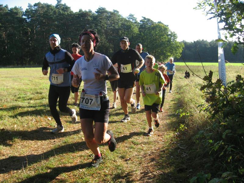 Immer wieder fasziniert vom Bad Belziger Burgenlauf, starteten zusammen mit weiteren 500 Läufern, auch wieder vier Bode-Runners in die wunderschöne Herbstlandschaft. Vom Rathausplatz hoch auf rund 190 Höhenmeter, erreichte der Tross den Hagelberg. Dort wo schon preußische Landwehrsoldaten gegen napoleonische Soldaten auf dem Schlachtfeld siegten, kämpften nun wieder die schnellsten Läuferbeine um die ausgeschriebene Bergprämie in Form einer fetten Cremetorte. Keine Gewinnchance für die gestarteten Bode-Runners, zumal die Torte den derzeitigen Ernährungsplan der Sportler wahrscheinlich schwer durcheinander gebracht hätte. Lutz Klauß verstand sich an den Bergpassagen ordentlich abzusetzen, wusste er doch, dass sich das Verfolgerfeld auf den einfachen Abschnitten wieder herankämpfen würde. Indes suchte Jens-Uwe Börner vergebens nach den vereinsinternen Fotomotiven. Bis zu den Walkern zurückgefallen, vermutete er richtig: Hier läuft kein Bode-Runner mehr. In seiner Aufholjagd konnte er sich gerade noch bis zu Sylvia Köhn vorarbeiten, Lutz Klauß und Sabine Börner waren bereits über alle Berge. Nachdem das Schloss Wiesenburg mit seiner wunderschönen Kreuzkirche aus dem 13. Jahrhundert passiert war, mussten nur noch zehn Kilometer absolviert werden. Außer dem Ernteverkehr auf den weiten Feldern waren die Läufer nun ganz unter sich. Ein letzter Verpflegungspunkt stärkte für die restlichen Anstiege und an Borne vorbei, ging es wieder zurück zur Burg Eisenhardt nach Bad Belzig. Bis auf fünf Sekunden, schaffte Sabine Börner den Anschluss auf Lutz Klauß. Ihr Ziel auf den letzten vier Kilometern ständig vor Augen und die Verfolgerin quasi wissentlich im Nacken, lieferten am Ende beide Sportler eine neue Bestzeit ab. Für Jens-Uwe Börner war der Burgenlauf einer der wenigen Vorbereitungsläufe auf Frankfurt. Nur durchkommen ist angesagt, mehr ist zeitlich momentan nicht drin. Sylvia Köhn kann indes zufrieden einen weiteren Langlauf abhaken. Und das auch noch erfolgreich, denn gemeinsam mit Teamkollegin Börner, erreichten beide einen zweiten Platz in ihren Altersklassen. Während die Ankommenden bei Banane und Müsli wieder Kräfte sammelten, trudelten auch die 32-Kilometerläufer in Staßfurt langsam aus. In Magdeburg und Dresden wird man sich am kommenden Sonntag noch einmal auf der Halbmarathondistanz auslaufen, bevor die Läufer der Gaensefurther Sportbewegung mit dem Frankfurt Marathon einen hoffentlich erfüllten Saisonabschluss feiern können.