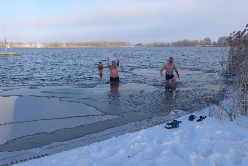 Laufgruppe: Sonntagstraining und Eisbaden Löderburger See"Eisfüße" nehmen Eisbad
