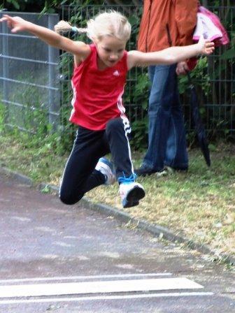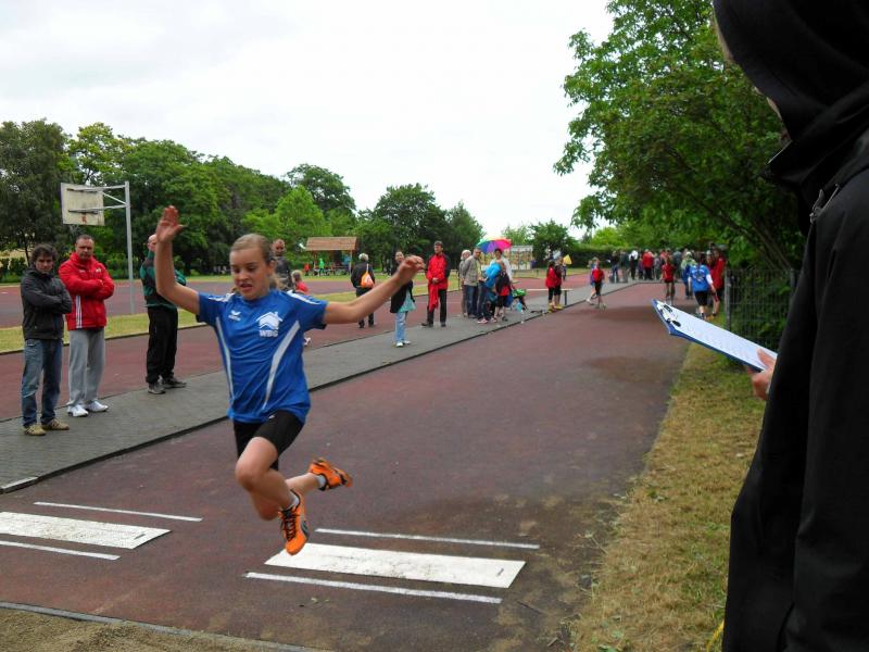 Nina hingegen erwies sich als erfolgreichste Teilnehmerin der Gaensefurther. Mit drei persönlichen Bestleistungen zeigte sie sich in Hochform. Dafür wurde sie im Sprint mit 9,18 Sekunden (Vorlauf 9,03s) mit dem Sieg belohnt. Im Weitsprung und  400m Lauf erreichte sie jeweils Platz drei. Der Ballweitwurf brachte der künftigen Erstklässlerin mit 15,39 Meter eine weitere Goldmedaille ein.
