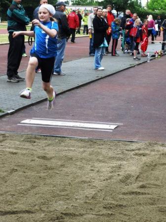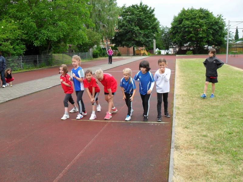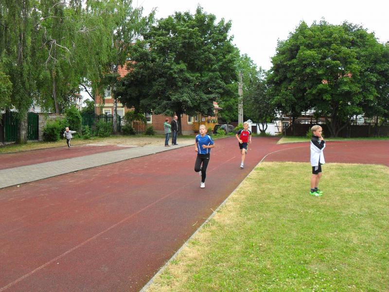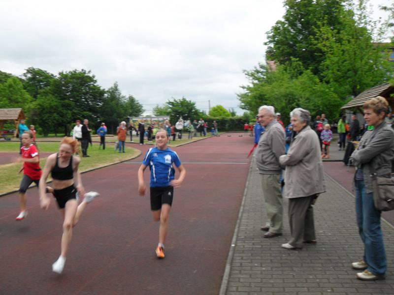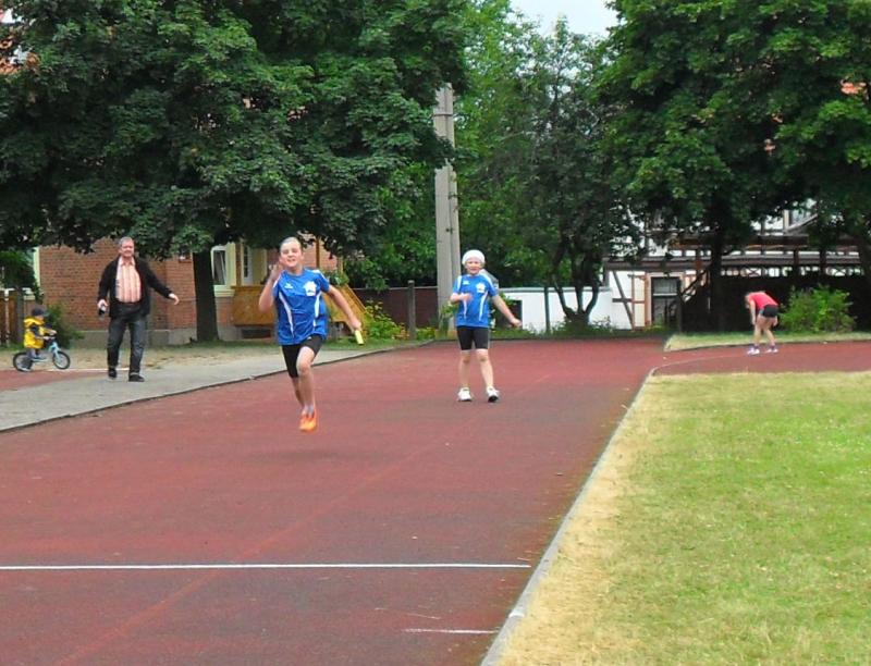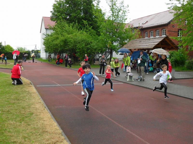 Nachdem das Rolandsportfest in Halberstadt vor 4 Wochen ins Wasser fiel, nahm man am Sonnabend einen neuen Anlauf. Da das Friedensstadion an diesem Tag nicht zur Verfügung stand, wichen die Organisatoren auf einen Schulsportplatz im Stadtteil Wehrstedt aus. Man hatte vor 2 Jahren hier schon einmal gute Erfahrungen machen können, allerdings mussten auch einige Abstriche in Kauf genommen werden. So gibt es nur 4 Sprint- und 2 Rundbahnen mit 200 Metern. Die Zeitmessung erfolgte handgestoppt. Aber nichts desto trotz für die jüngsten Athleten nicht die schlechtesten Bedingungen. Eine fast familiäre Atmosphäre, bei der unter Umständen auch schon mal Mutti oder Vati im Innenraum nebenher laufen konnten. Von unserem Verein reisten 9 Sportlerinnen und Sportler mit ihrer Begleitung in die Nordharzstadt.