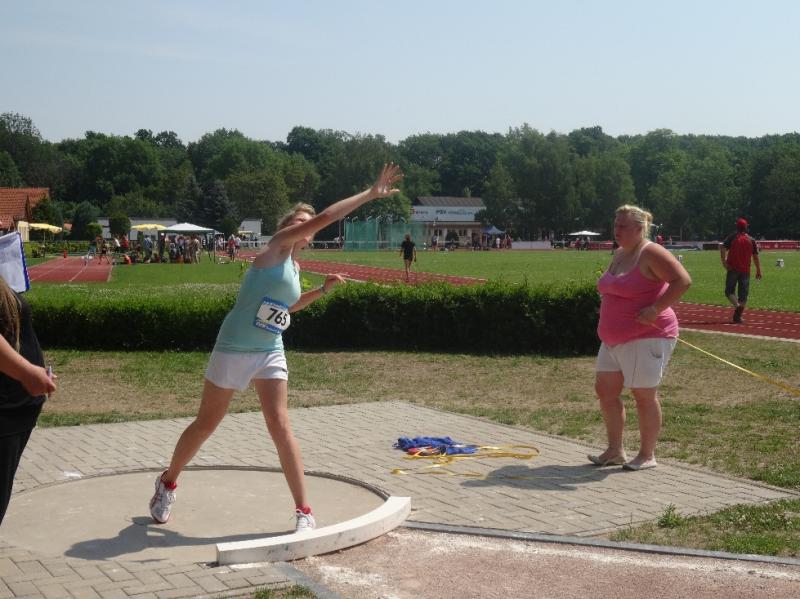 Celine Ladehoff (w13)  hatte sich für Kugelstoß und 800m Lauf entschieden. Dass die Kugel bei 7,18m landete, löste bei ihr große Freude aus, zumal sie damit auch eine neue PB vorweisen konnte. Der 800m Lauf fiel dann wie auch bei den anderen Athleten der Hitze zum Opfer.