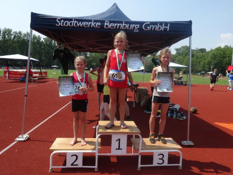 Einen sehr erfolgreichen Tag hatte auch Fabienne Sämisch (w9). Mit 3 persönlichen Bestleistungen (Ball-25,72m (2.), 50m-8,97 (3.), weit-3,19m (3.) durfte sie drei Mal auf dem Podest ihre Medaillen in Empfang nehmen.