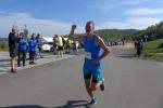 Vom Aussichtsturm „Leonhardt“ gingen jeweils zehn Starter im Minutentakt auf die Reise. Elf Gaensefurther waren auf der Kurzstrecke mit dabei. Da hatten es die Fahrgäste im Geiseltal-Express doch etwas bequemer. Unbeeindruckt und manchmal gefährlich nahe, zog die bunte Kleinwegebahn an den Läufern vorbei. In leichten Wellen ging es auf dem Geiseltalrundweg entlang, bevor die letzten drei Kilometer direkt am See zurückführten. Nach dem großen Zielbogen am Besucherzentrum Marina wurden alle Finisher herzlich begrüßt. Zehn Sekunden schneller als im vorigen Jahr, fuhr Sandra Homann (1. Platz Altersklasse W40) im vereinsinternen Duell den Sieg für sich ein, gefolgt von Jana Berger (1. Platz W50) und Janine Wuwer (3. Platz W35).