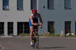 Geschwommen wurde rund um die sogenannte Spülinsel, eine kleine Insel mit Campingplatz, im Hafenbecken von Havelberg gelegen. Die Wasserqualität war trotz des Hochwassers als unbedenklich eingestuft und nicht trüber als auch in den Jahren zuvor. Auf den letzten 500 Metern, bog man dann in den eigentlichen Flusslauf der Havel ein, was ein wenig ''Rückenwind'' bedeutete. Nach guten hundert Metern Laufstrecke zum Wechselbereich, ging es aufs Rad um drei Runden von je 22 km zu absolvieren. Die Strecke ging nördlich von Havelberg über Dahlen, Nitzow um nach 11 km in Quitzöbel zu wenden. Der Wind spielte komischerweise auf der Hin- bzw. Rückstrecke eine Rolle, was die Sache gepaart mit schlechtem Fahrbahnbelag nicht einfacher machte. Das Schöne an Wendepunktstrecken ist aber, das einem seine Mitstreiter wieder entgegen kommen und man so gut einschätzen kann, wo man sich im Feld befindet. Die besten Beine hatte an diesem Tag Thomas Vetter, der die Radstrecke in 01:54:22 Stunden bewältigte, knapp gefolgt von Chris Anders, der trotz Luftproblemen bei den Witterungsbedingungen am Hinterrad von Vetter biß. Für die Meisten war dieser Turn nach rund zwei Stunden gemeistert und es hieß einen schnellen Wechsel hin zu bekommen. Ab in die Laufschuhe.