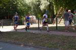Die sehr schön gelegene Laufstrecke führte die Athleten fünf Laufrunden zu je 3,3 km rund um das Hafengelände. Der Kurs ging über die Spülinsel am Jachthafen zurück, insgesamt durch drei Brücken verbunden, hinauf zum Wendepunkt, der vielen Athlethen aufgrund der Steigung in Erinnerung blieb. Es hieß also Runden zählen. Wärend Anders als guter Läufer seine fünf Durchgänge abspulte, beschäftigte sich Vetter vermehrt mit Krämpfen, die scheinbar ein Mix aus zu hart angegangenem Radsplit und den hohen Temperaturen an diesem Tag waren. Schlenker und Schmidtschneider waren auf änlichem Niveau unterwegs, wärend Schlenker noch mit Resten seiner Fußverletzung und dem daraus resultierendem Trainingsmanko zu kämpfen hatte, konnte sich Schmidtschneider in der letzten Laufrunde noch eimal motivieren und nahm Schlenker 1,5 Minuten ab, wann hat man schonmal die Gelegenheit, einen jungen Burschen hinter sich zu lassen, tönte er nach dem Zieleinlauf.
