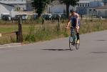 Geschwommen wurde rund um die sogenannte Spülinsel, eine kleine Insel mit Campingplatz, im Hafenbecken von Havelberg gelegen. Die Wasserqualität war trotz des Hochwassers als unbedenklich eingestuft und nicht trüber als auch in den Jahren zuvor. Auf den letzten 500 Metern, bog man dann in den eigentlichen Flusslauf der Havel ein, was ein wenig ''Rückenwind'' bedeutete. Nach guten hundert Metern Laufstrecke zum Wechselbereich, ging es aufs Rad um drei Runden von je 22 km zu absolvieren. Die Strecke ging nördlich von Havelberg über Dahlen, Nitzow um nach 11 km in Quitzöbel zu wenden. Der Wind spielte komischerweise auf der Hin- bzw. Rückstrecke eine Rolle, was die Sache gepaart mit schlechtem Fahrbahnbelag nicht einfacher machte. Das Schöne an Wendepunktstrecken ist aber, das einem seine Mitstreiter wieder entgegen kommen und man so gut einschätzen kann, wo man sich im Feld befindet. Die besten Beine hatte an diesem Tag Thomas Vetter, der die Radstrecke in 01:54:22 Stunden bewältigte, knapp gefolgt von Chris Anders, der trotz Luftproblemen bei den Witterungsbedingungen am Hinterrad von Vetter biß. Für die Meisten war dieser Turn nach rund zwei Stunden gemeistert und es hieß einen schnellen Wechsel hin zu bekommen. Ab in die Laufschuhe.